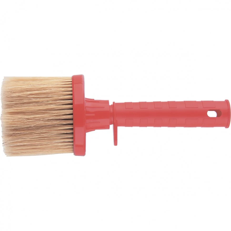 Маховая кисть Matrix KM 65 84006 с натуральной щетиной, пластиковыми корпусом и ручкой, используется для нанесения краски, побелки или грунтовки на поверхности большой площади. Круглый пучок кустовой набивки позволяет наносить лакокрасочный материал плотным слоем. В составе пучка преимущественно натуральная щетина, поэтому кисть устойчива к износу и не теряет упругости при длительном использовании.ПреимуществаНатуральная светлая щетина двойной выварки обладает хорошей краскоотдачей и износоустойчивостью, обеспечивая равномерное распределение краски по поверхности.Концы щетинок расщеплены, что повышает способность кисти набирать и удерживать краску.Пластиковый корпус не подвержен коррозии, что обеспечивает долговечность инструмента.Съемная ручка позволяет установить телескопический удлинитель или стержень с резьбовым соединением — это дает возможность окрашивать высокие потолки и стены без использования стремянки или подмостей.Кисть удобно сушить и хранить благодаря отверстию для подвешивания.