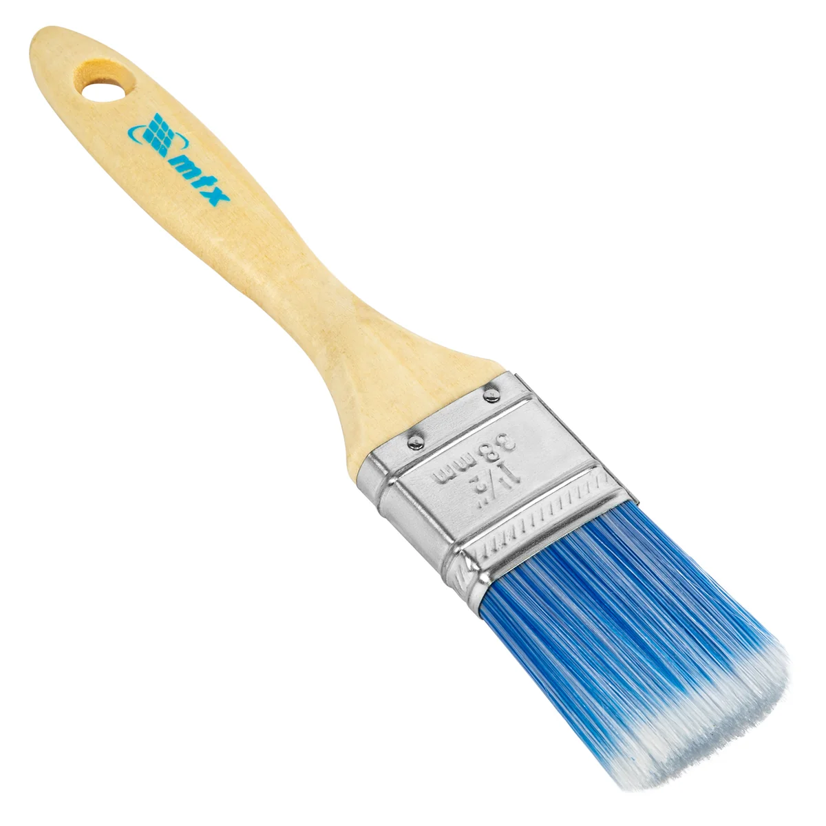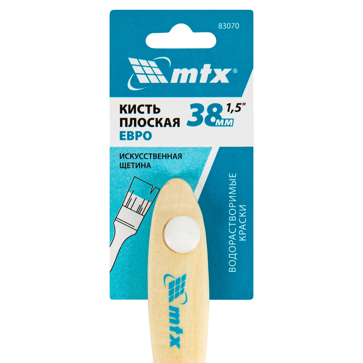 Плоская кисть MTX «Евро» 83070 шириной 1,5 , с искусственной щетиной и деревянной ручкой, предназначена для малярных работ. Оптимальна для работы с водорастворимыми ЛКМ (акриловыми, латексными, водоэмульсионными), удобна для обработки узких и труднодоступных мест. Кисть подходит для профессионального использования.ПреимуществаДолговечность — искусственная щетина не разбухает и не теряет эластичность под действием воды, выдерживает многократное использование.Прочность — щетина крепко зафиксирована при помощи клеевого состава и металлического бандажа.Эффективная работа — расщепленная на концах щетина хорошо впитывает и отдает краску.Высокое качество выполняемых работ — благодаря волоскам конической формы кисть равномерно распределяет краску, позволяя получить гладкое покрытие.Коррозионная стойкость — на металлический бандаж нанесено защитное покрытие, а на деревянную рукоятку — матовый лаковый состав.Комфортная работа — эргономичная рукоятка удобно ложится в руку, позволяя долго работать без ощущения усталости.Удобное хранение — в рукоятке имеется отверстие для подвешивания кисти на крючок или гвоздь.