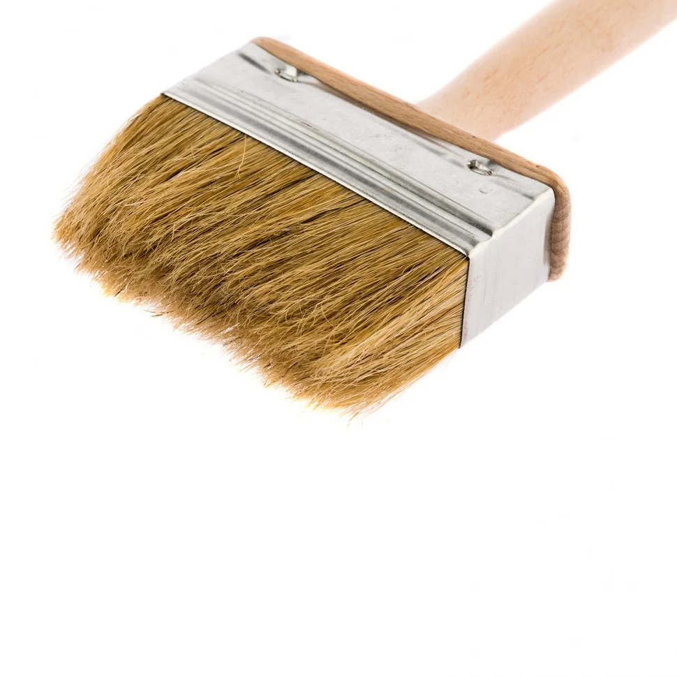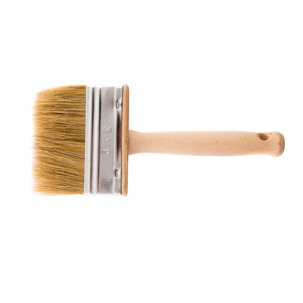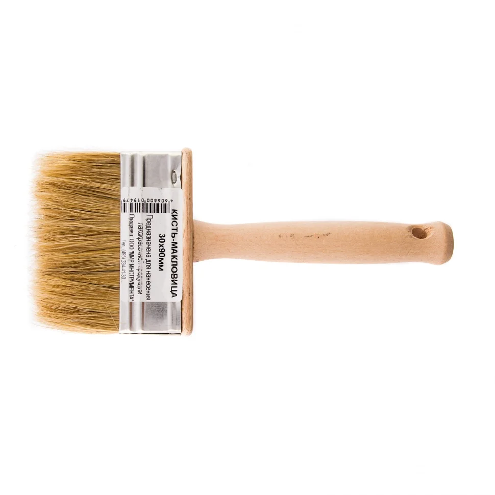 Кисть-ракля 84072, 30 х 90 мм, с натуральной щетиной, деревянными корпусом и ручкой, служит для нанесения лакокрасочных материалов на поверхности большой площади. Может использоваться для обработки фасадов, стен и потолков. Натуральная щетина с добавлением искусственного ворса не деформируется при работе с водно-дисперсионными красками и устойчива к растворителям. Поэтому кисть может применяться с ЛКМ на водной основе, масляными красками, лаками, а также клеящими составами.ПреимуществаНатуральная светлая щетина двойной выварки обладает хорошей краскоотдачей и износоустойчивостью, обеспечивая равномерное распределение краски по поверхности.Свиная щетина обладает высокой износостойкостью, что продлевает срок службы кисти.Щетина с расщепленными кончиками способна удерживать и отдавать большой объем краски, равномерно распределяя ее по поверхности — это повышает качество работы, экономит расход ЛКМ и время мастера.Металлический бандаж защищен от ржавчины антикоррозийным покрытием, поэтому кисть выдерживает замачивание и длительный контакт с ЛКМ.Деревянная ручка удобно лежит в руке и не скользит, благодаря чему снижается усталость во время продолжительной работы.Отверстие в ручке позволяет подвешивать кисть для замачивания или просушки.