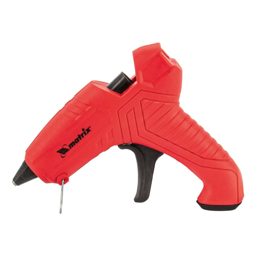 Клеевой пистолет Matrix 93004, 16 мм, используется для бытовых и полупрофессиональных нужд: мелкого ремонта, упаковки товаров, фиксации деталей, создания игрушек и объемных украшений, декорирования и т.д. Инструмент пригодится отделочникам, моделистам и тем, кто занимается хенд-мейдом. Он выдает 10 г клея в минуту.ПреимуществаНосик оборудован специальной накладкой из каучука, которая защищает оператора от ожогов.Противокапельная система предотвращает подтекание клея, это позволяет снизить его расход и содержать рабочее место в порядке.Пистолет можно ставить на подставку для удобства работы.Пистолет полностью готов к работе - в комплекте идут 2 клеевых стержня.