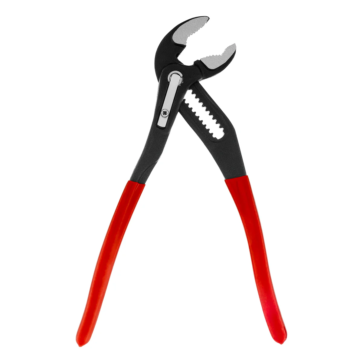 Переставные клещи Matrix 17926 длиной 250 мм, выполненные из хромованадиевой стали, с кнопочным механизмом и обливными рукоятками, используются для проведения монтажных и слесарных работ. Универсальный инструмент заменяет ключи различных размеров и применяется для фиксации заготовок, откручивания гаек, зажима и удержания труб диаметром до 60 мм.