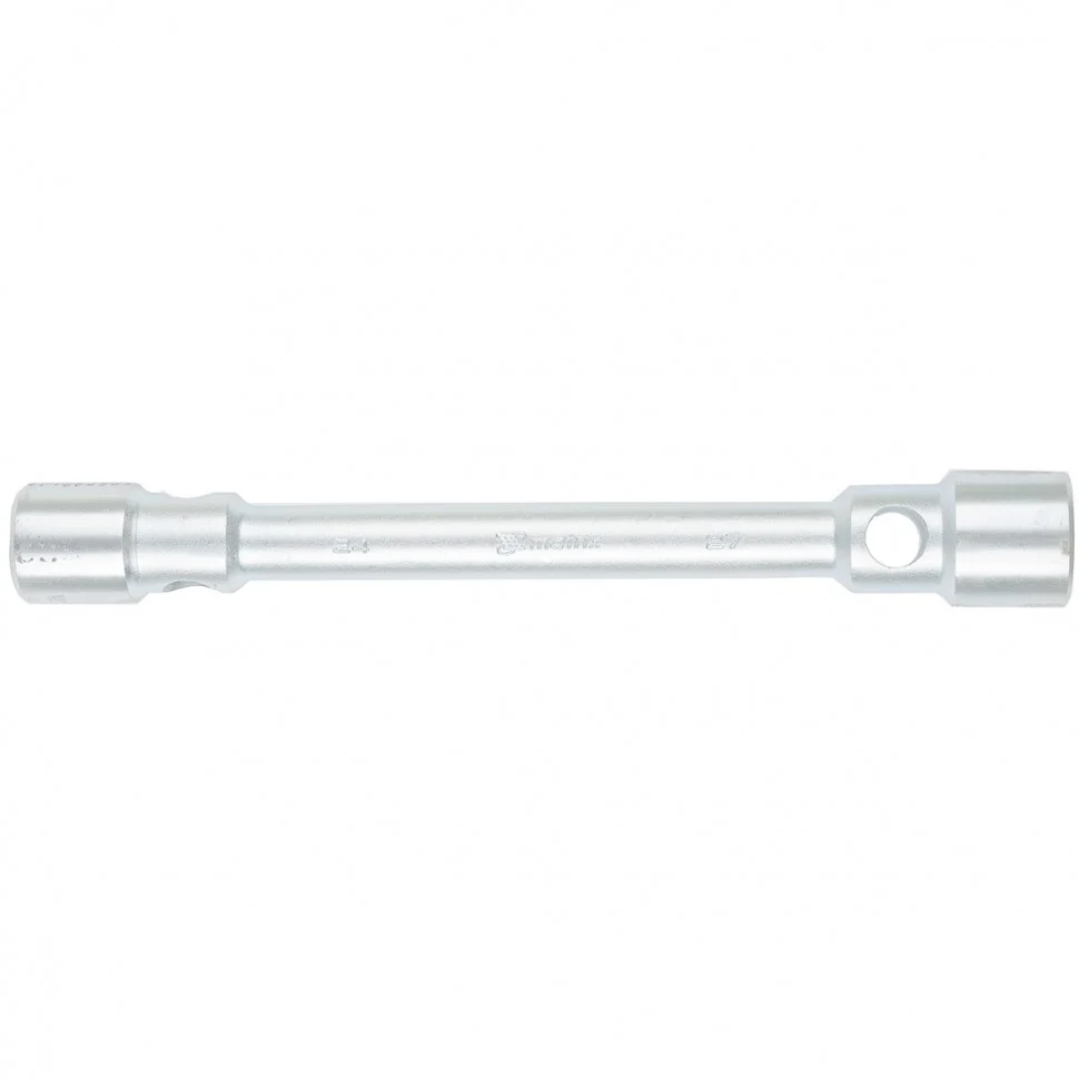 Двухсторонний балонный ключ Matrix 14295, 24 х 27 мм, толщиной 26 мм и длиной 350 мм, используется для шиномонтажных работ на грузовом транспорте и автобусах. Две несъемные торцевые шестигранные головки подходят под крепежи 24 и 27 мм. Инструмент применяется на станциях техобслуживания.ПреимуществаВысокий показатель прочности и долговечность — толщина инструмента составляет 26 мм.Устойчивость к значительным нагрузкам — ключ изготовлен из углеродистой стали 45, рабочие части закалены до твердости 41 HRC (полное соответствие ГОСТу).Ключ может эксплуатироваться в любых условиях — цинковое покрытие защищает его от коррозии.