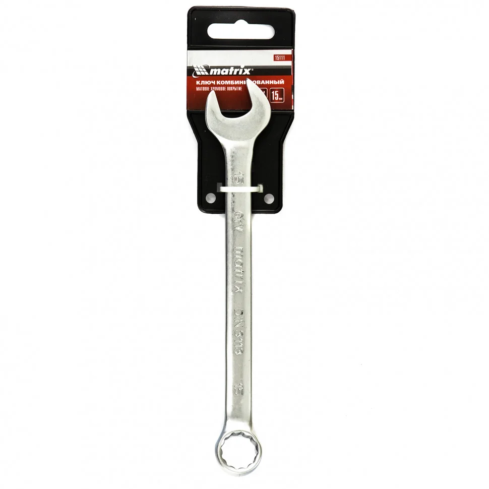 Ключ комбинированный, 15 мм, CrV, матовый хром Matrix 15111