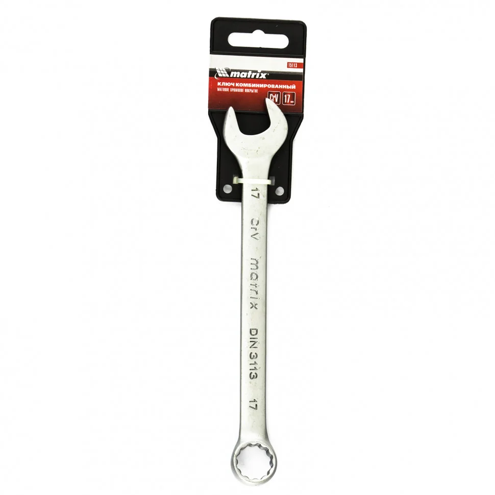 Ключ комбинированный, 17 мм, CrV, матовый хром Matrix 15113