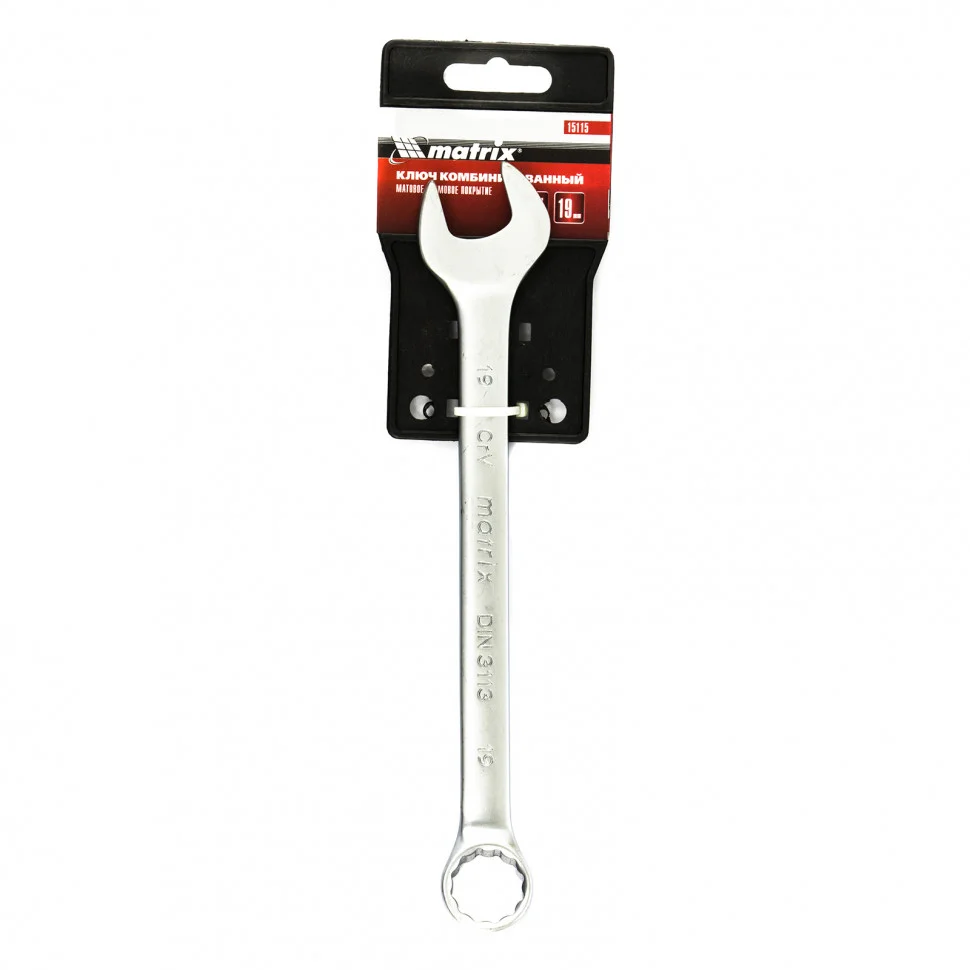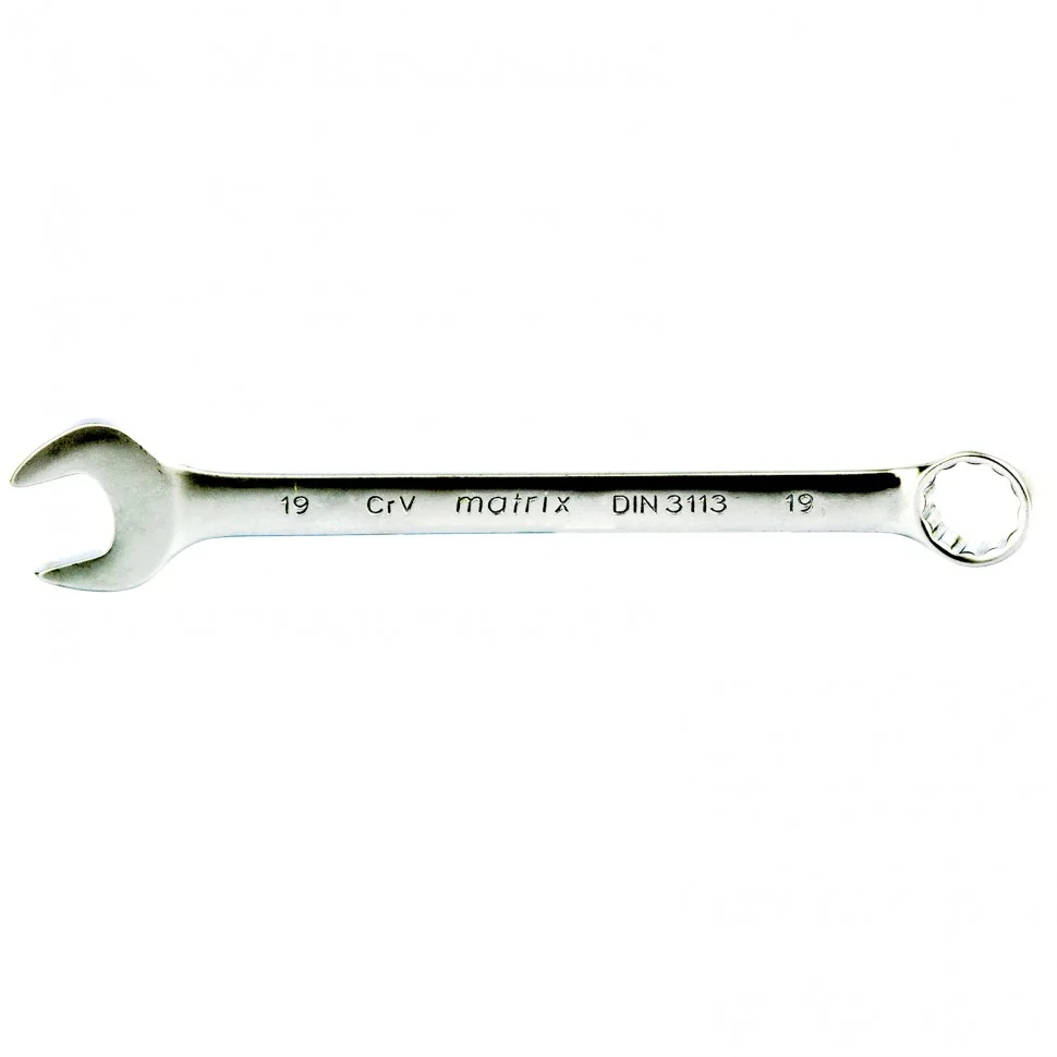Ключ комбинированный, 19 мм, CrV, матовый хром Matrix 15115