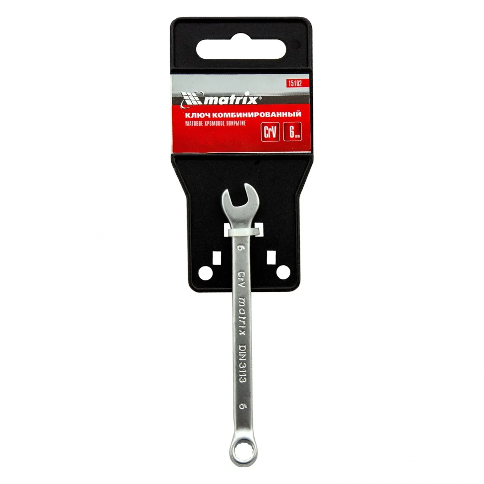 Ключ комбинированный, 6 мм, CrV, матовый хром Matrix 15102