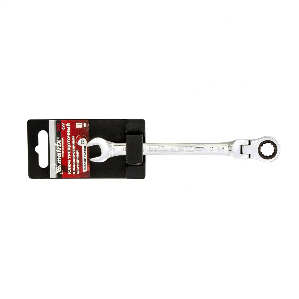 Ключ комбинированный трещоточный, 10 мм, CrV, шарнирный, зеркальный хром Matrix Professional14862
