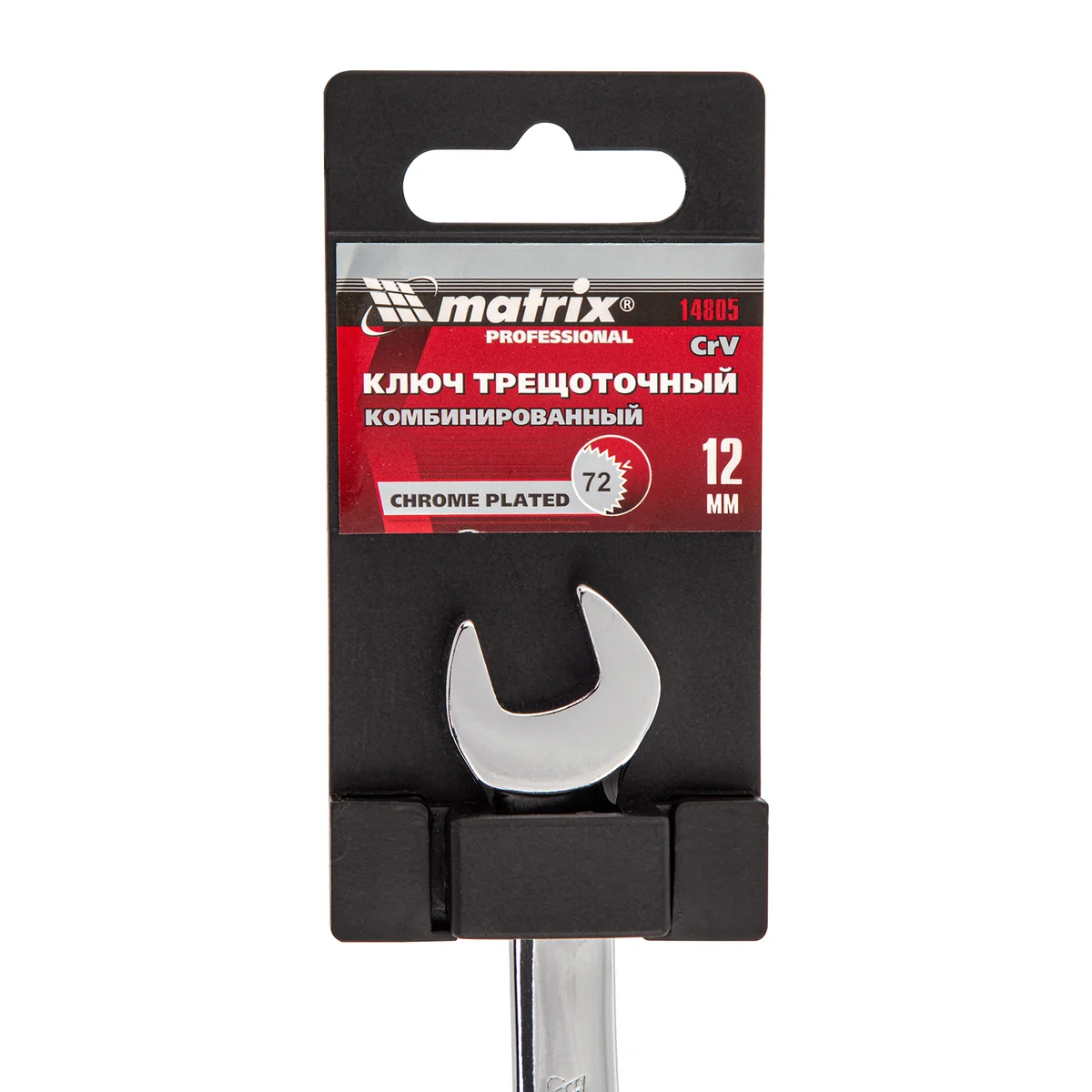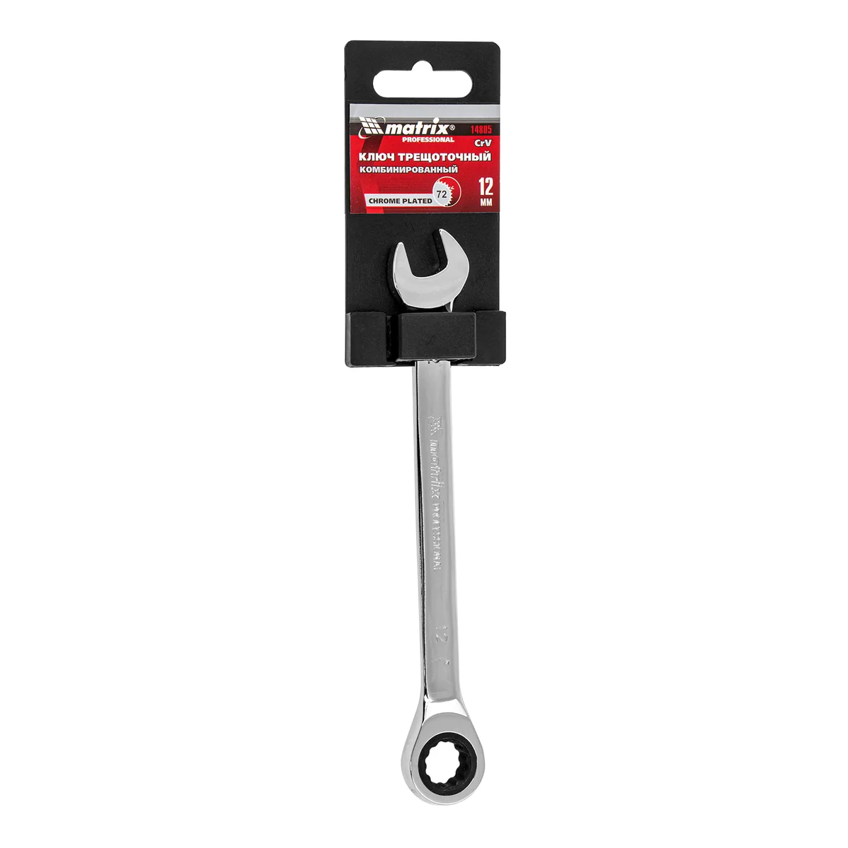 Ключ комбинированный трещоточный, 12 мм, CrV, зеркальный хром Matrix Professional14805