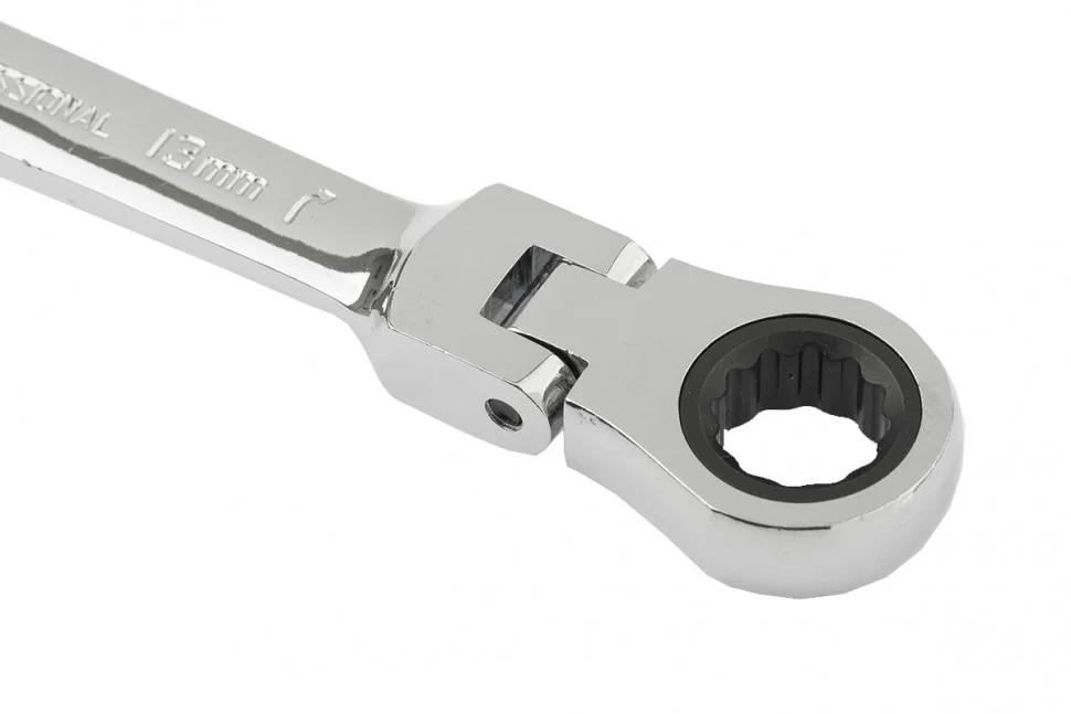 Ключ комбинированный трещоточный, 13 мм, CrV, шарнирный, зеркальный хром Matrix Professional14865