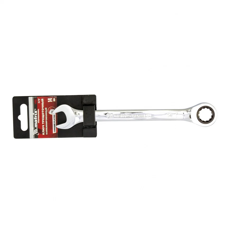 Ключ комбинированный трещоточный, 14 мм, CrV, зеркальный хром Matrix Professional14807