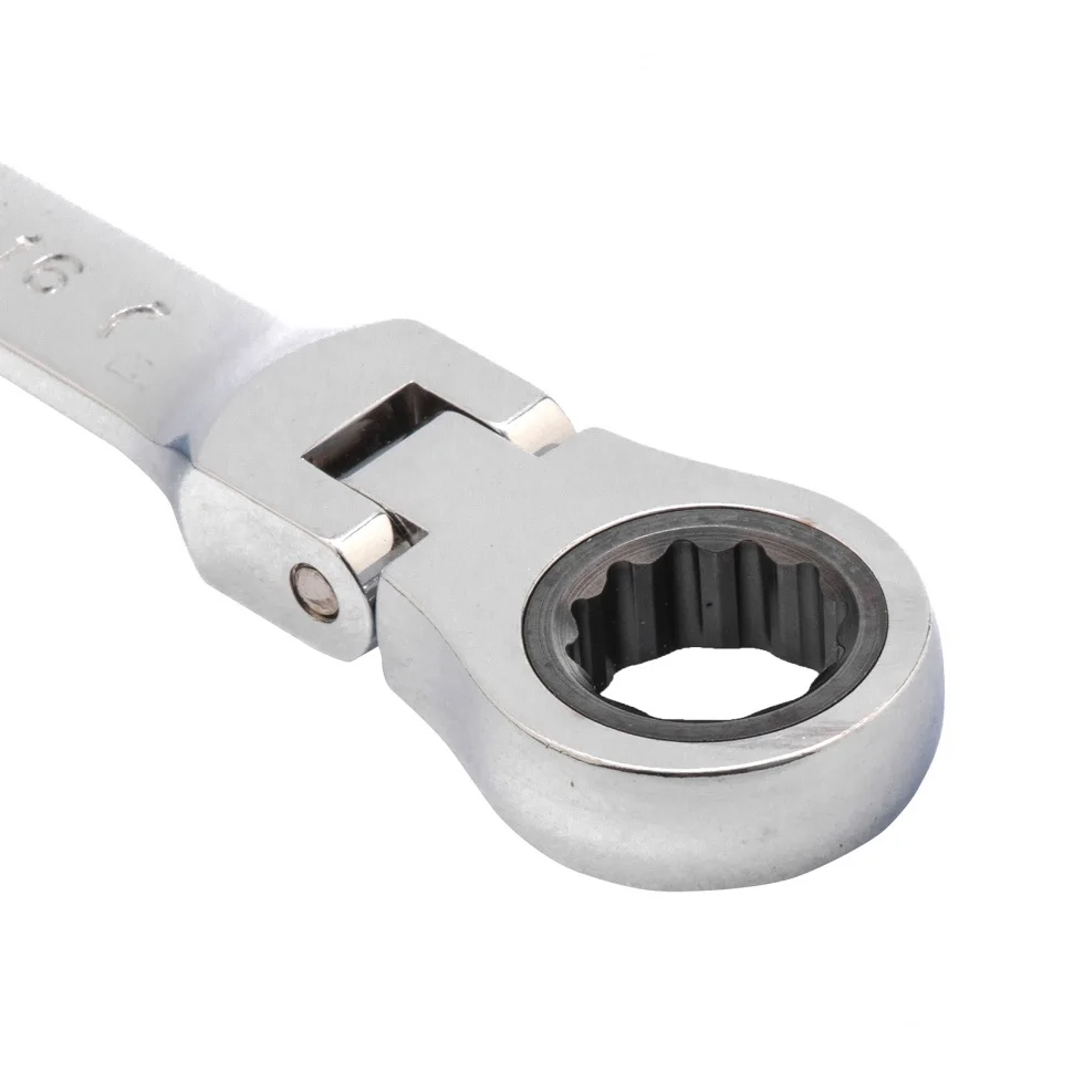 Ключ комбинированный трещоточный, 16 мм, CrV, шарнирный, зеркальный хром Matrix 14829