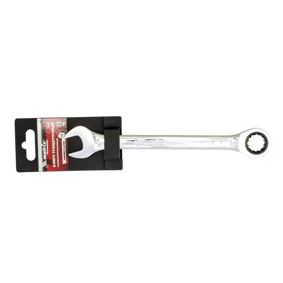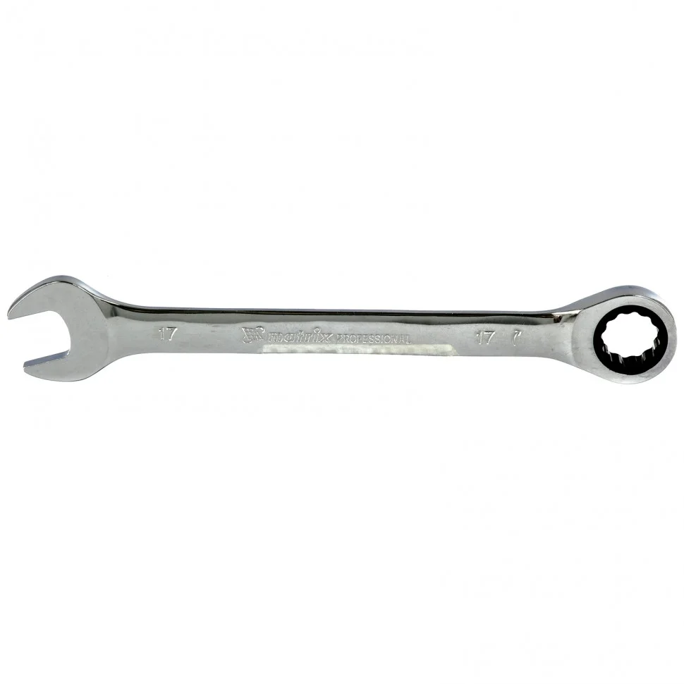 Ключ комбинированный трещоточный, 17 мм, CrV, зеркальный хром Matrix Professional14810
