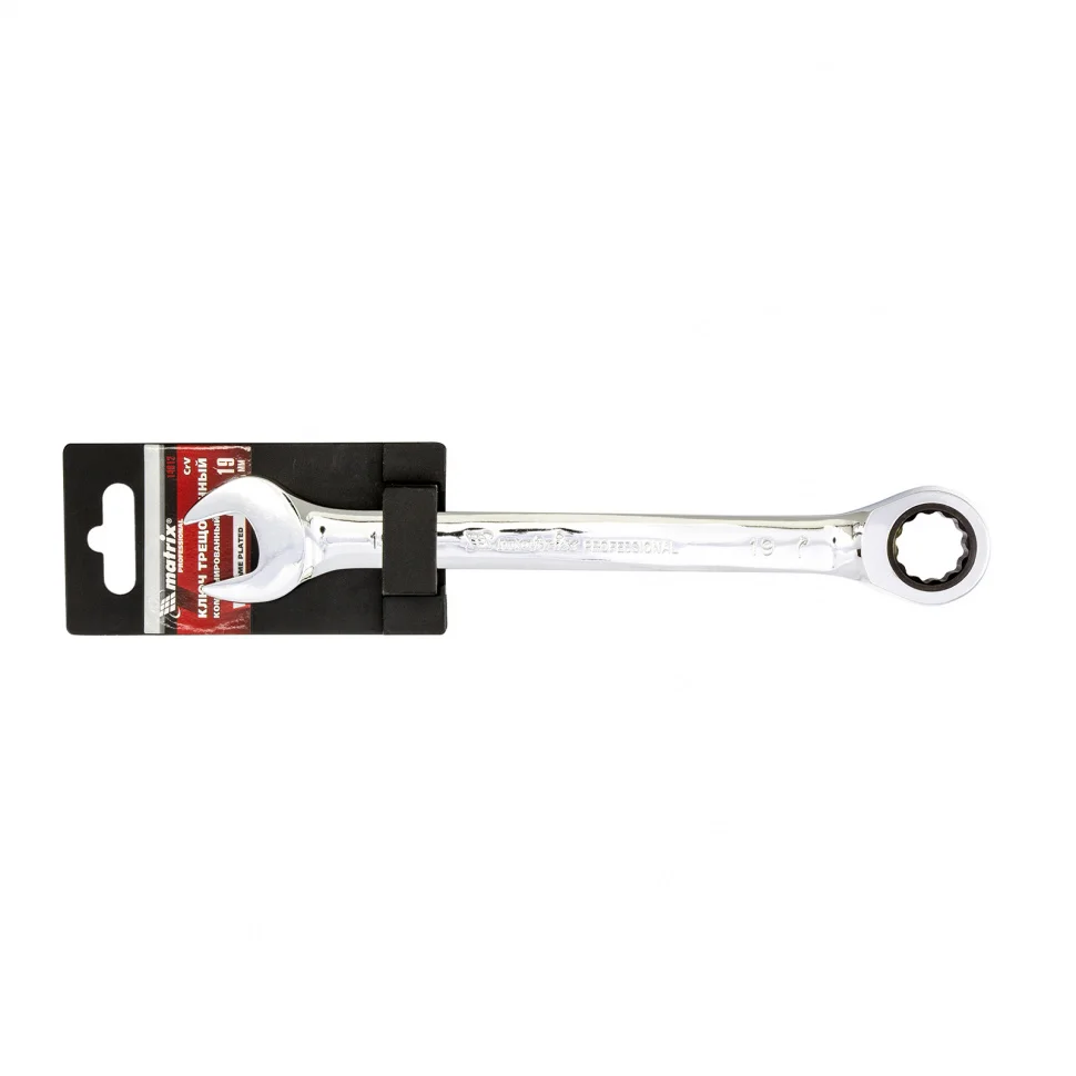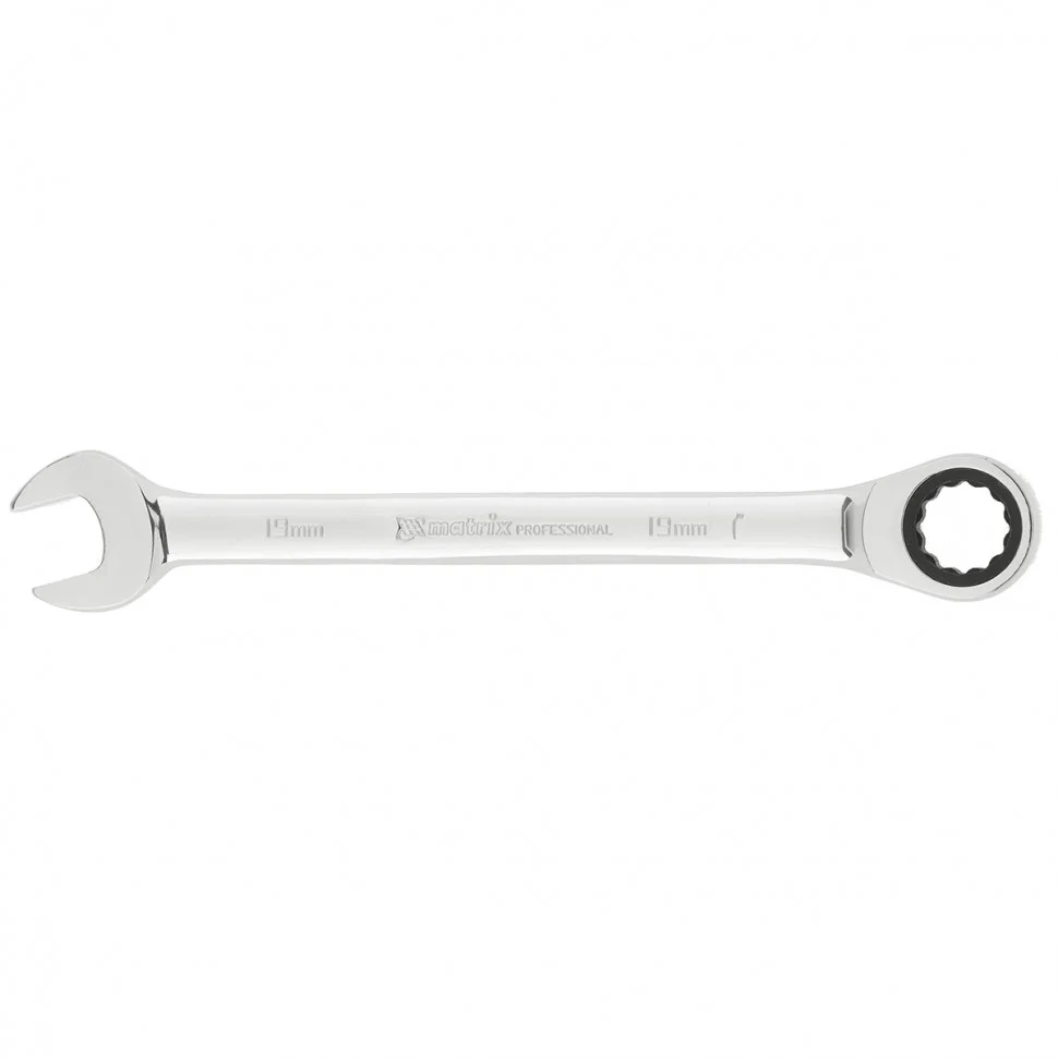 Ключ комбинированный трещоточный, 19 мм, CrV, зеркальный хром Matrix Professional14812