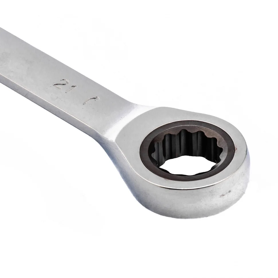 Комбинированный трещоточный ключ Matrix 14813 из стали CrV, с покрытием «зеркальный хром», 21 мм, позволяет быстро откручивать и закручивать болты и гайки. Рожковую часть удобно использовать там, где нет возможности полного охвата детали, а трещоточный механизм повышает удобство работы в труднодоступных местах.ПреимуществаКлюч сделан из стали высокого качества 40CrV, храповый механизм имеет твердость 58 HRC, поэтому инструмент легко выдерживает интенсивные нагрузки.Зеркальное хромоникелевое покрытие обеспечивает защиту ключа от коррозии.Накидная часть с 12-гранным профилем охватывает деталь полностью, таким образом снижается риск деформации граней крепежа.