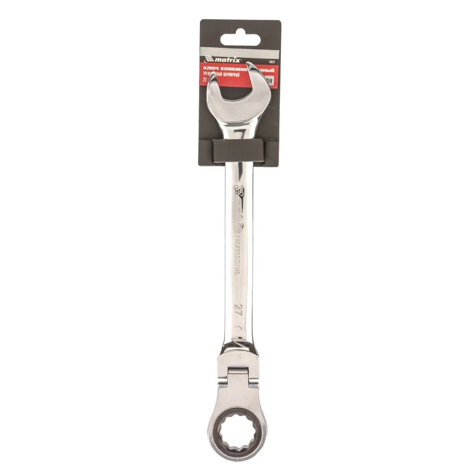 Ключ комбинированный трещоточный, 27 мм, CrV, шарнирный, зеркальный хром Matrix 14872