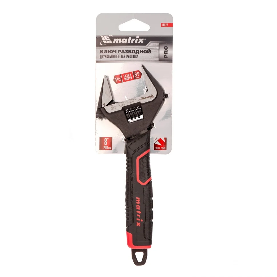 Фосфатированный разводной ключ Matrix PRO 15577 длиной 200 мм, с тонкими губками и двухкомпонентной рукояткой, относится к категории профессионального инструмента, применяется для монтажа и демонтажа крепежных элементов и работы с узким типом фитингов. Максимальная ширина раскрытия губок 39 мм позволяет работать с деталями разного размера. А тонкие губки увеличенной длины удобны при работе в труднодоступных местах.ПреимуществаНадежность и твердость — в качестве материала изготовления используется сталь 40 CRV..Фосфатирование — защитное покрытие не допускает появления ржавчины.Закаленные губки — твердость 50 HRC позволяет прикладывать большие усилия без риска поломки инструмента.Двухкомпонентная рукоятка — с ключом удобно работать даже без перчаток.