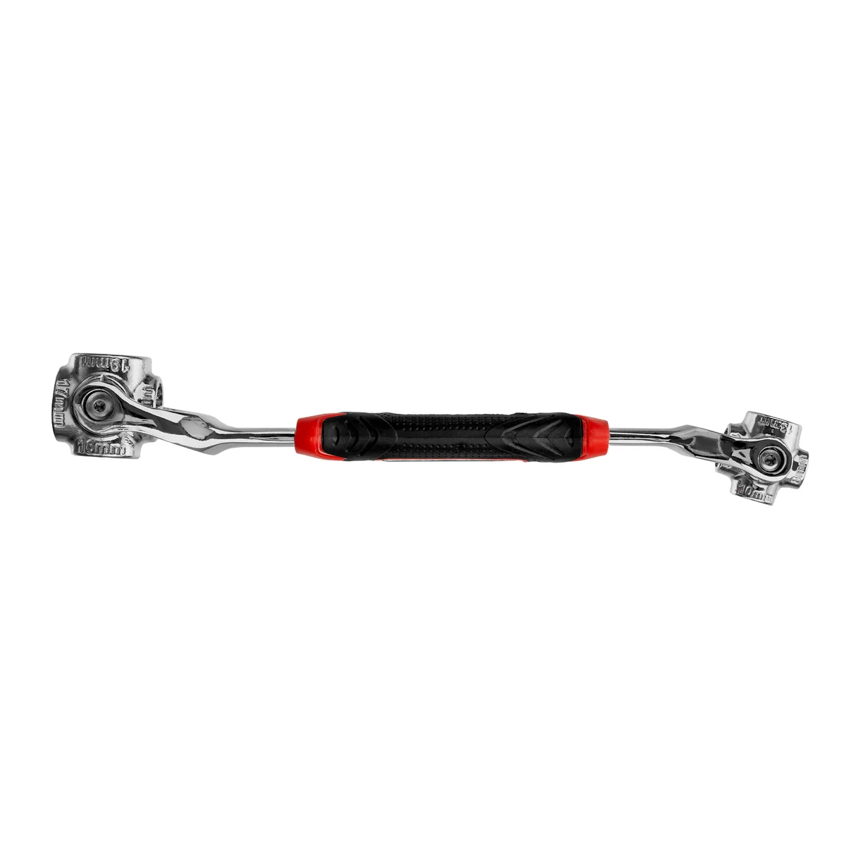 Ключ универсальный 48 в 1 Matrix 14999 из стали CrV имеет 8 размеров головок: 8 мм, 10 мм, 11 мм, 13 мм, 14 мм, 16 мм, 17 мм, 19 мм. Подходит для различных профилей: 6-гранных, 8-гранных, 12-гранных, Square, Torx, Spline. Предназначен для монтажа и демонтажа болтовых соединений. Поворот головки на 360° и угол наклона 45° позволяют работать в труднодоступных местах. Конструкция головки позволяет закручивать и откручивать крепежи на высоких шпильках.