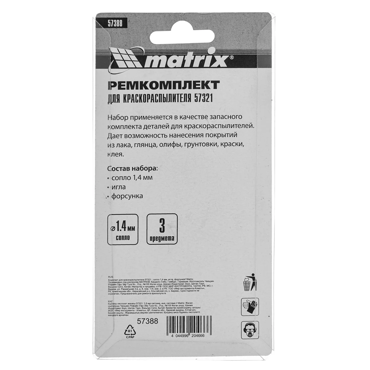 Комплект для краскораспылителя 57321 : сопло 1,4 мм, игла, форсунка Matrix 57388