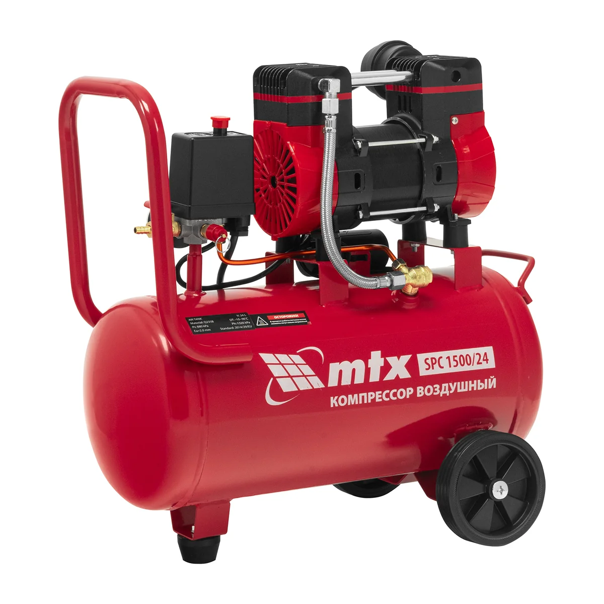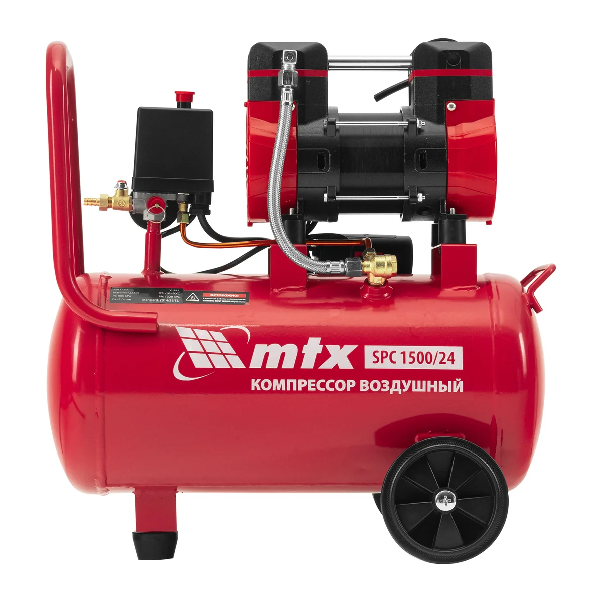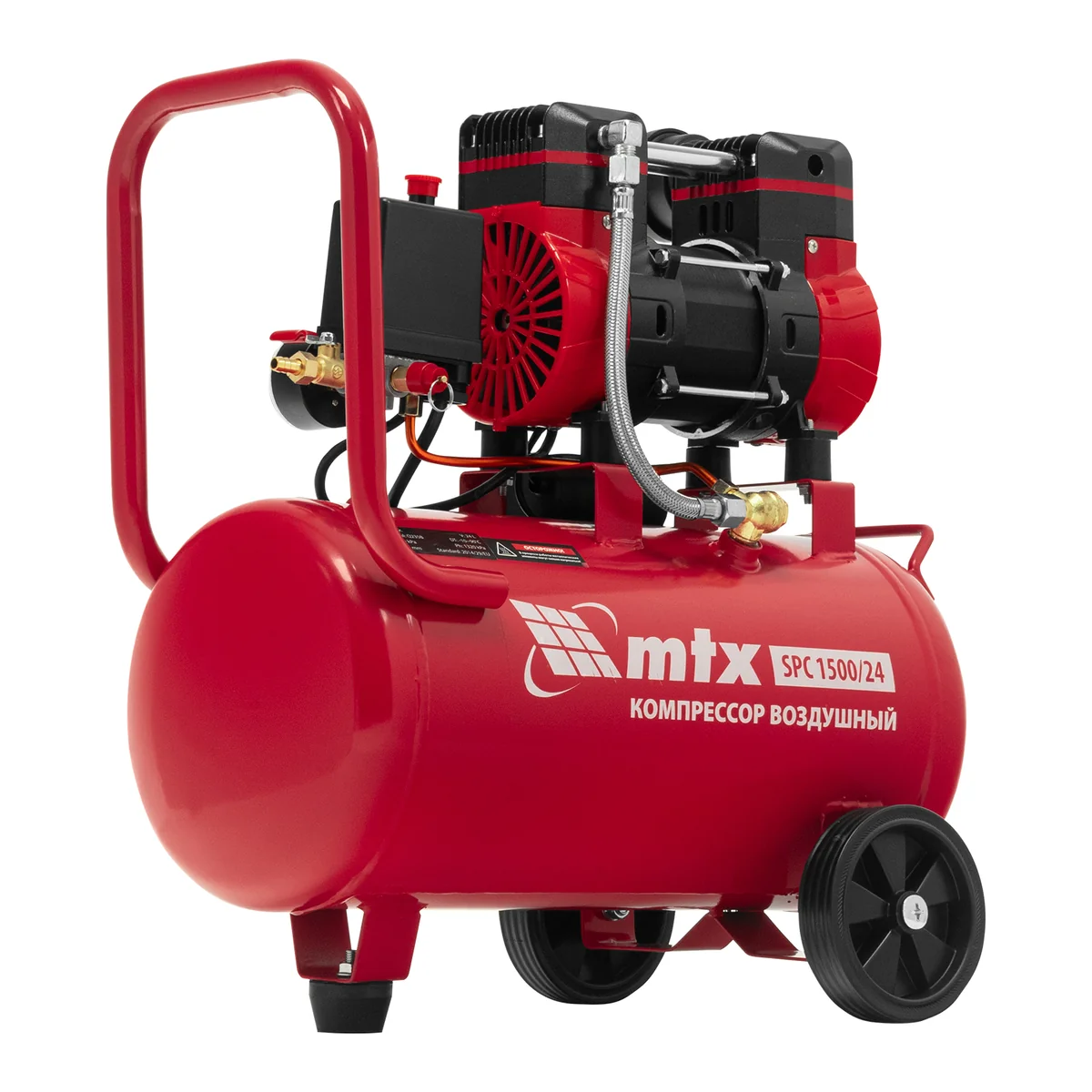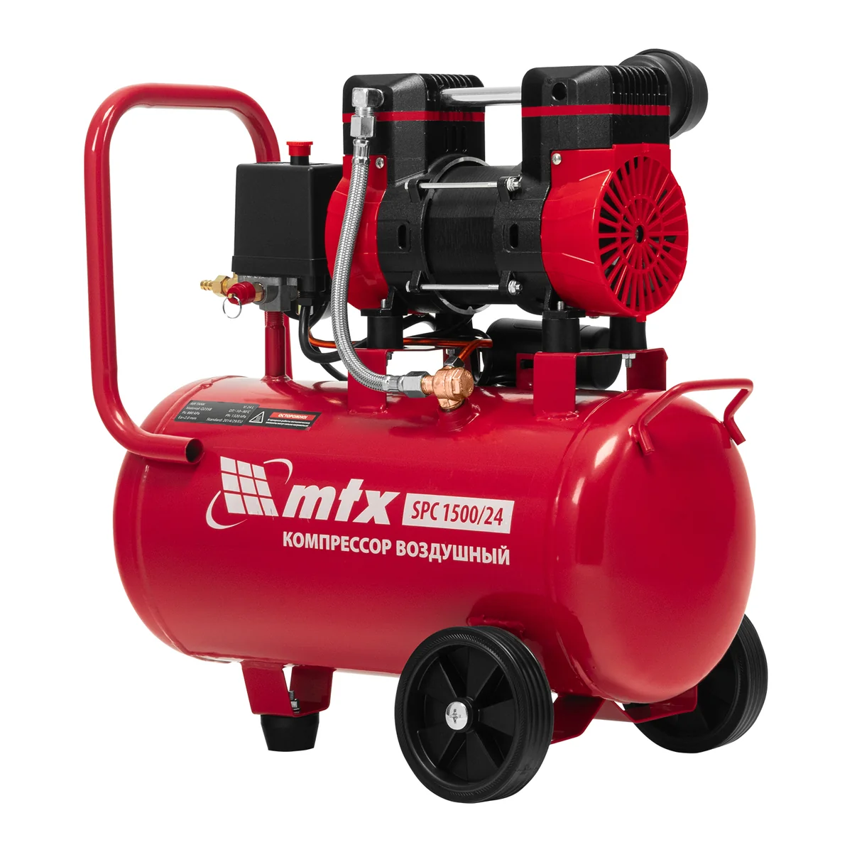 Компрессор безмасляный малошумный SPC 1500/24, 1500 Вт, ресивер 24 л, 260 л/мин MTX 58139