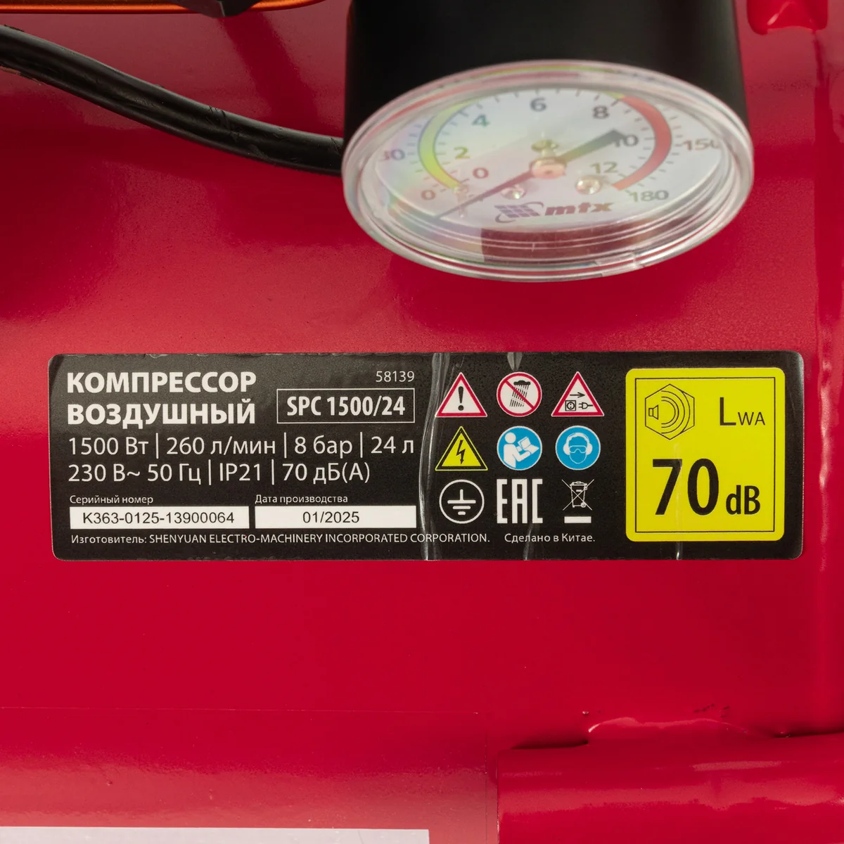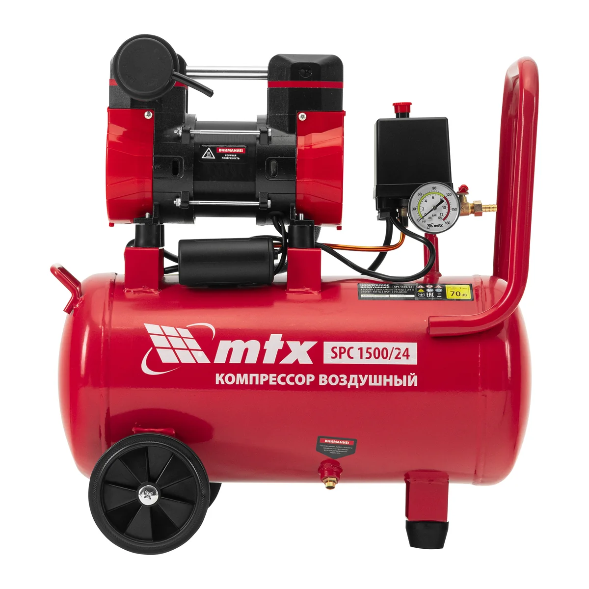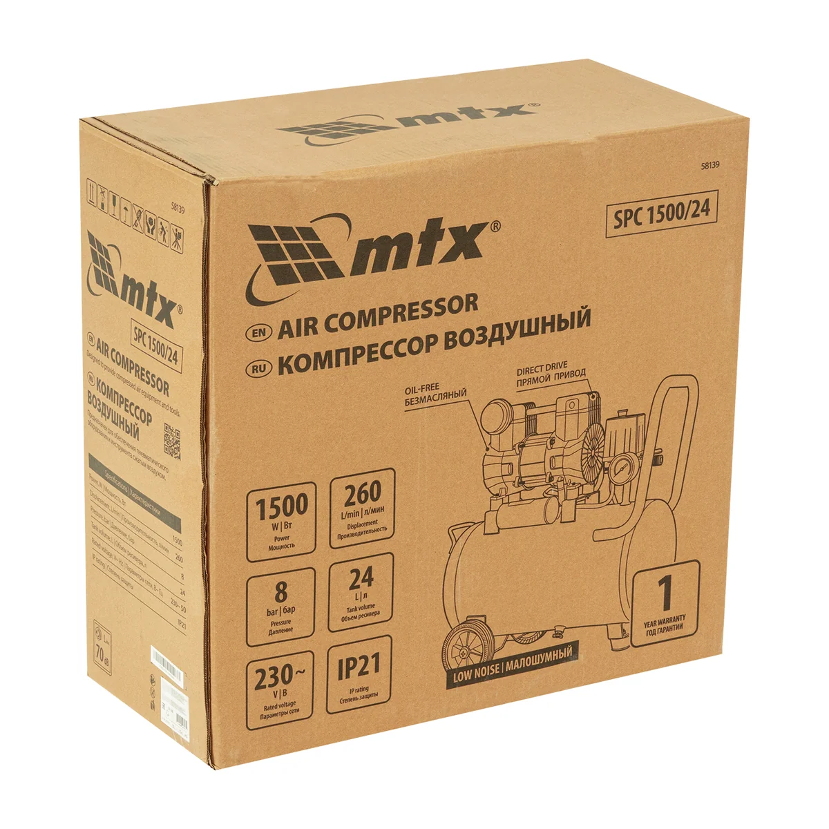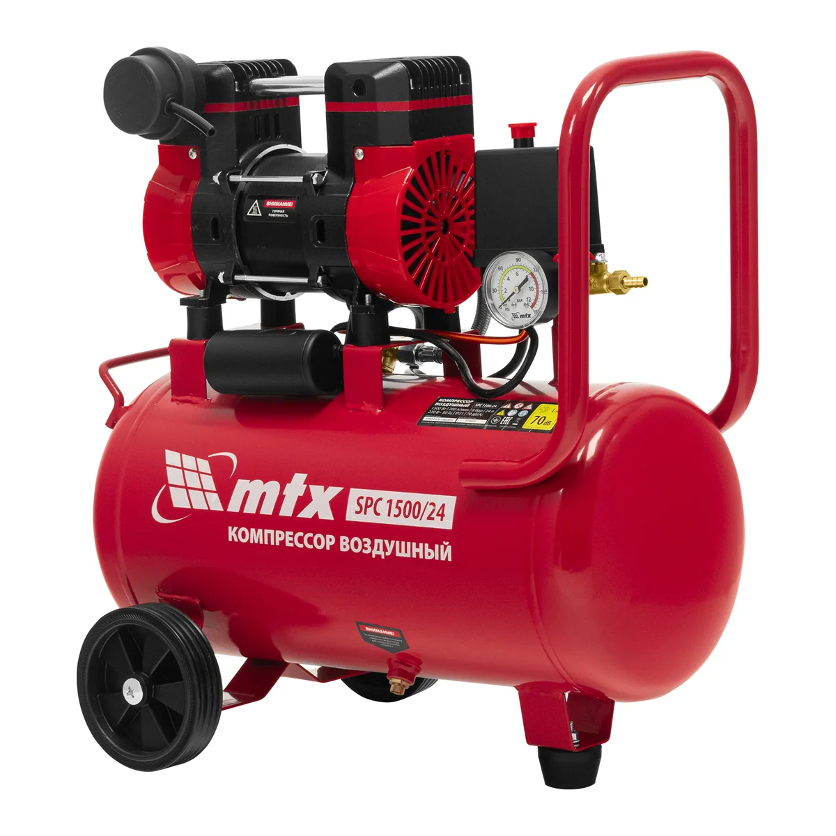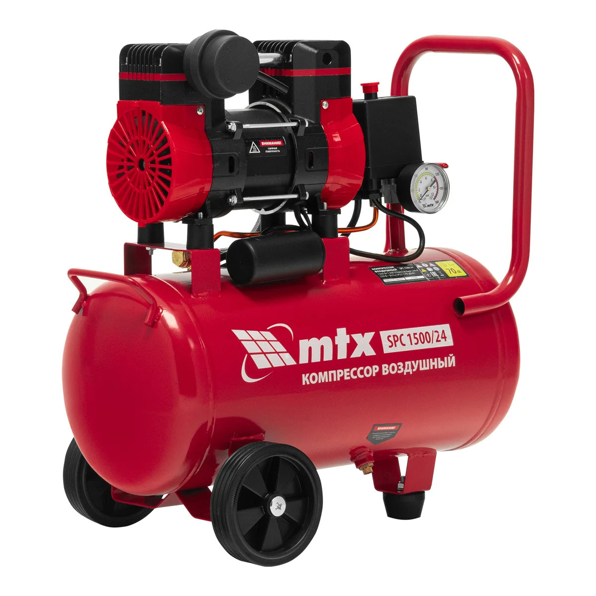 Компрессор безмасляный малошумный SPC 1500/24, 1500 Вт, ресивер 24 л, 260 л/мин MTX 58139