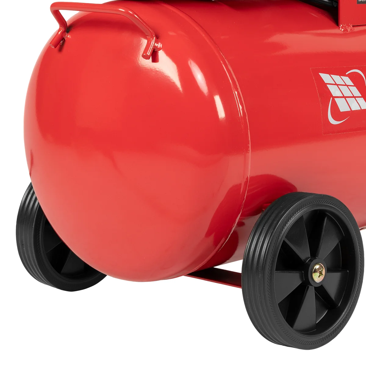 - Мобильность — благодаря колесам и рукоятке компрессор удобно разворачивать и перемещать по рабочей площадке.