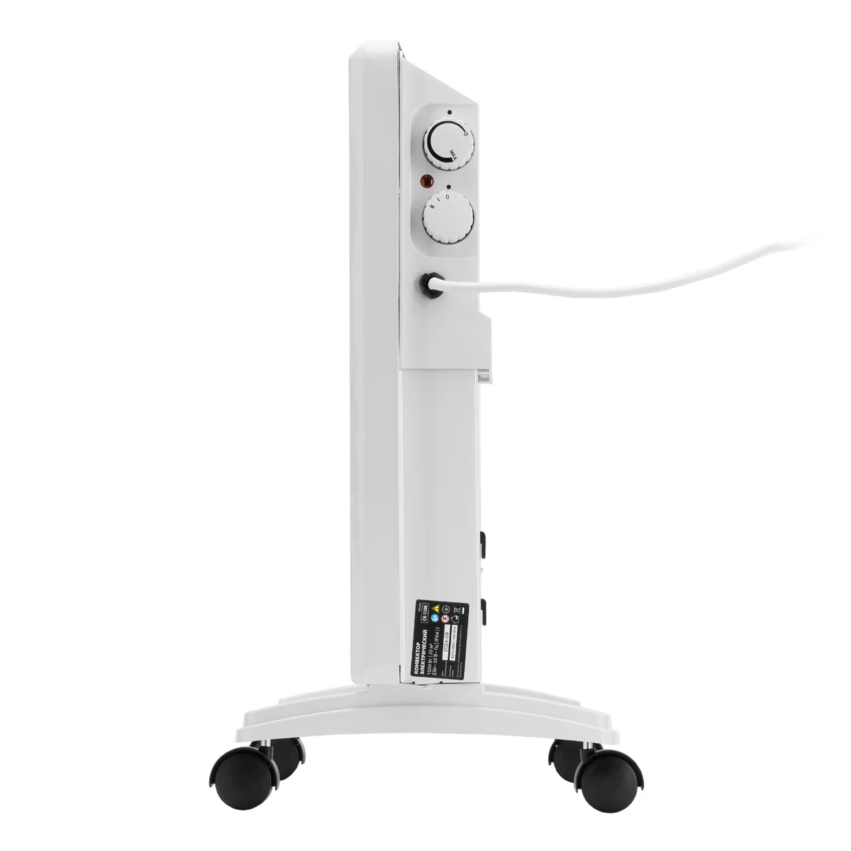 Электрический конвектор MTX CH-1500 98106 максимальной мощностью 1500 Вт, с X-образным нагревателем, термостатом и колесами, — источник тепла для жилых, офисных и хозяйственных помещений. X-образный нагревательный элемент позволяет быстро и равномерно нагреть помещение до нужной температуры. Площадь обогрева составляет 20 м2.