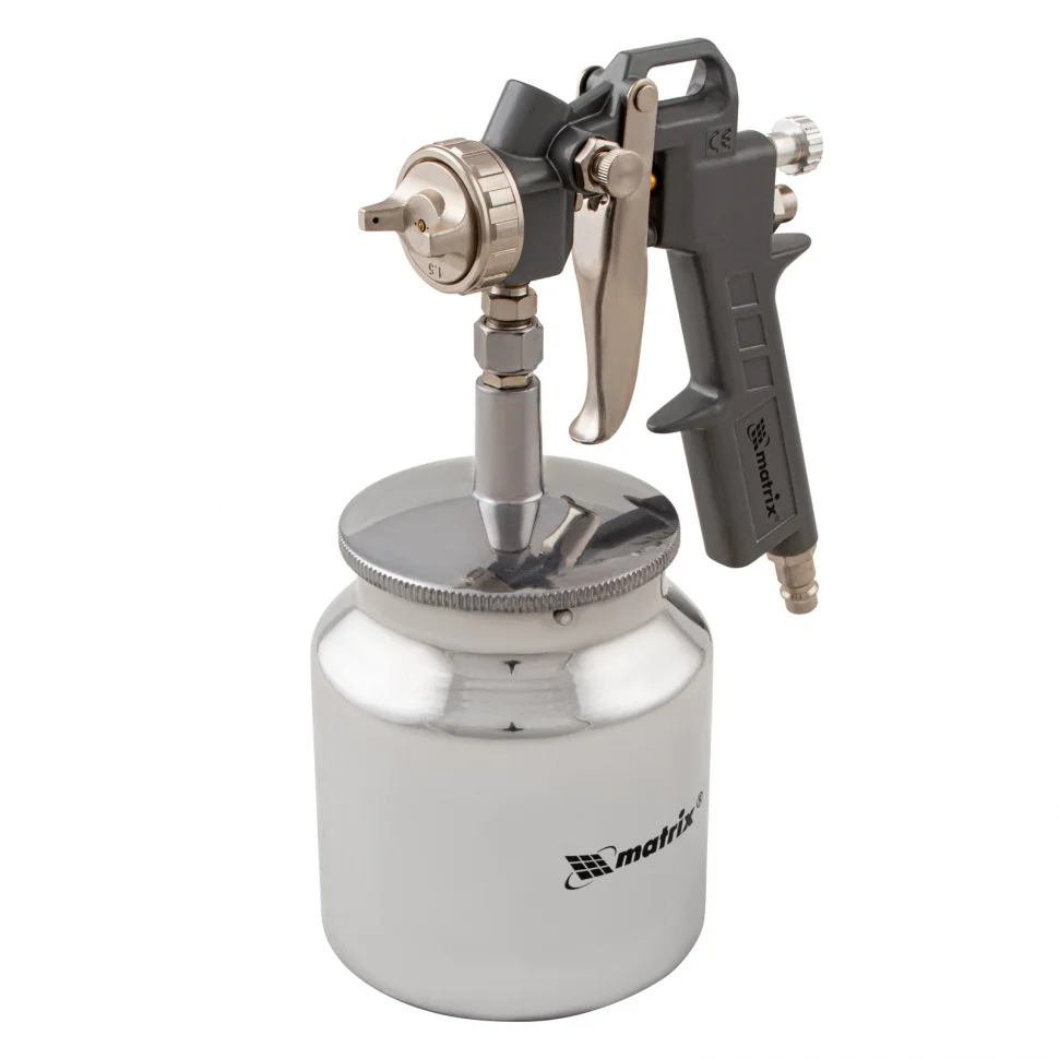 Краскораспылитель пневматический с нижним бачком V 0.75 л, сопло D 1.2, 1.5 и 1.8 мм Matrix 57317