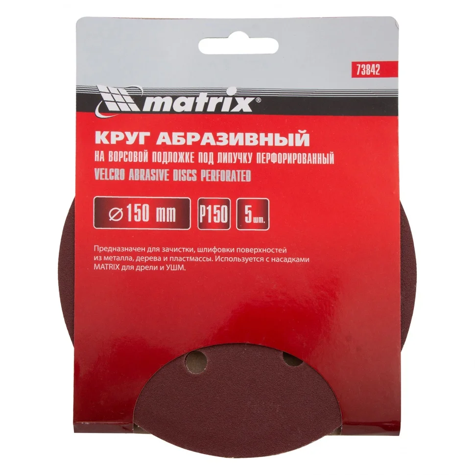 Круг абразивный на ворсовой подложке под "липучку", перфорированный, P 150, 150 мм, 5 шт Matrix 73842