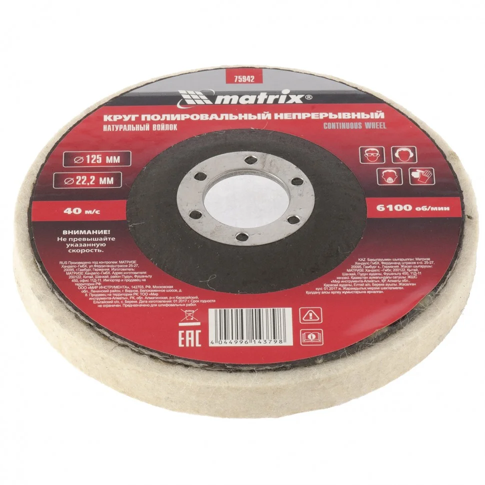 Круг полировальный непрерывный из натурального войлока 125 х 22.2 мм Matrix 75942