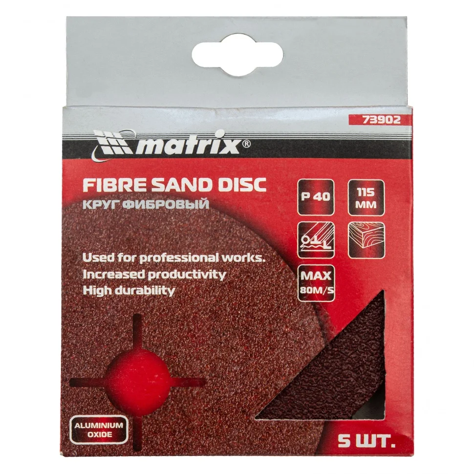 Фибровый круг Matrix Р40 арт. 73902 предназначен для установки на УШМ совместно с опорной тарелкой для фибровых кругов. Крупнозернистый абразив Р40 используется для грубой обработки металлических, каменных и деревянных изделий, помогает удалять лак, краску, заусенцы, ржавчину, затирать швы и устранять брызги после сварки.ПреимуществаАбразивное покрытие из электрокорунда с твердыми и заостренными зернами обеспечивает высокую режущую способность шлифовального круга.Эластичная фибровая основа устойчива к разрыву, поэтому круг подходит для обработки острых углов и сварных швов.Связка на основе фенольной смолы обеспечивает надежную фиксацию абразивных зерен, поэтому они не осыпаются даже при интенсивных работах.За счет прочной основы ресурс у фибровых кругов больше в 2-3 раза, чем у шлифкругов «под липучку».Набор состоит из 5 кругов, которых хватит надолго.