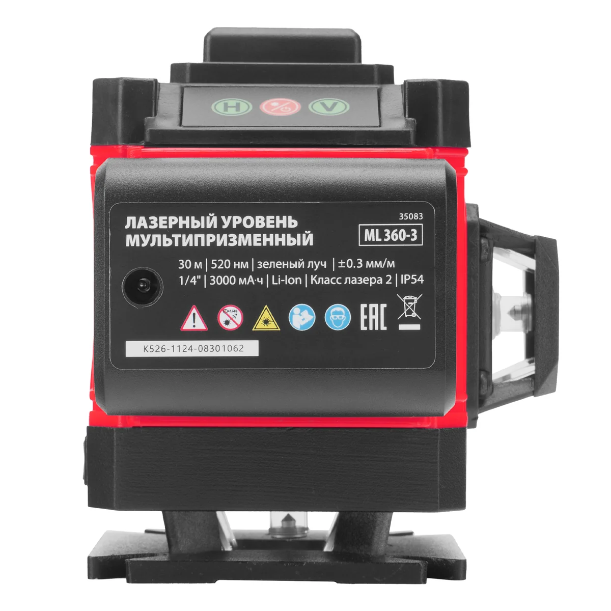 Лазерный уровень м-призм. ML 360-3 Basic SET, 30 м, зеленый луч, акк. Li 3000 мАч, сумка MTX 35083