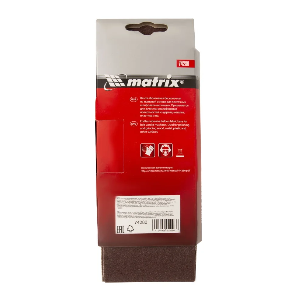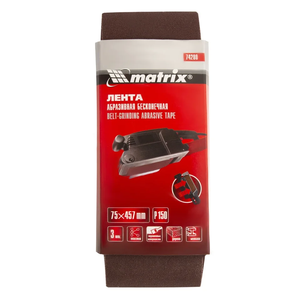 Лента абразивная бесконечная, P 150, 75 х 457 мм, 3 шт Matrix 74280