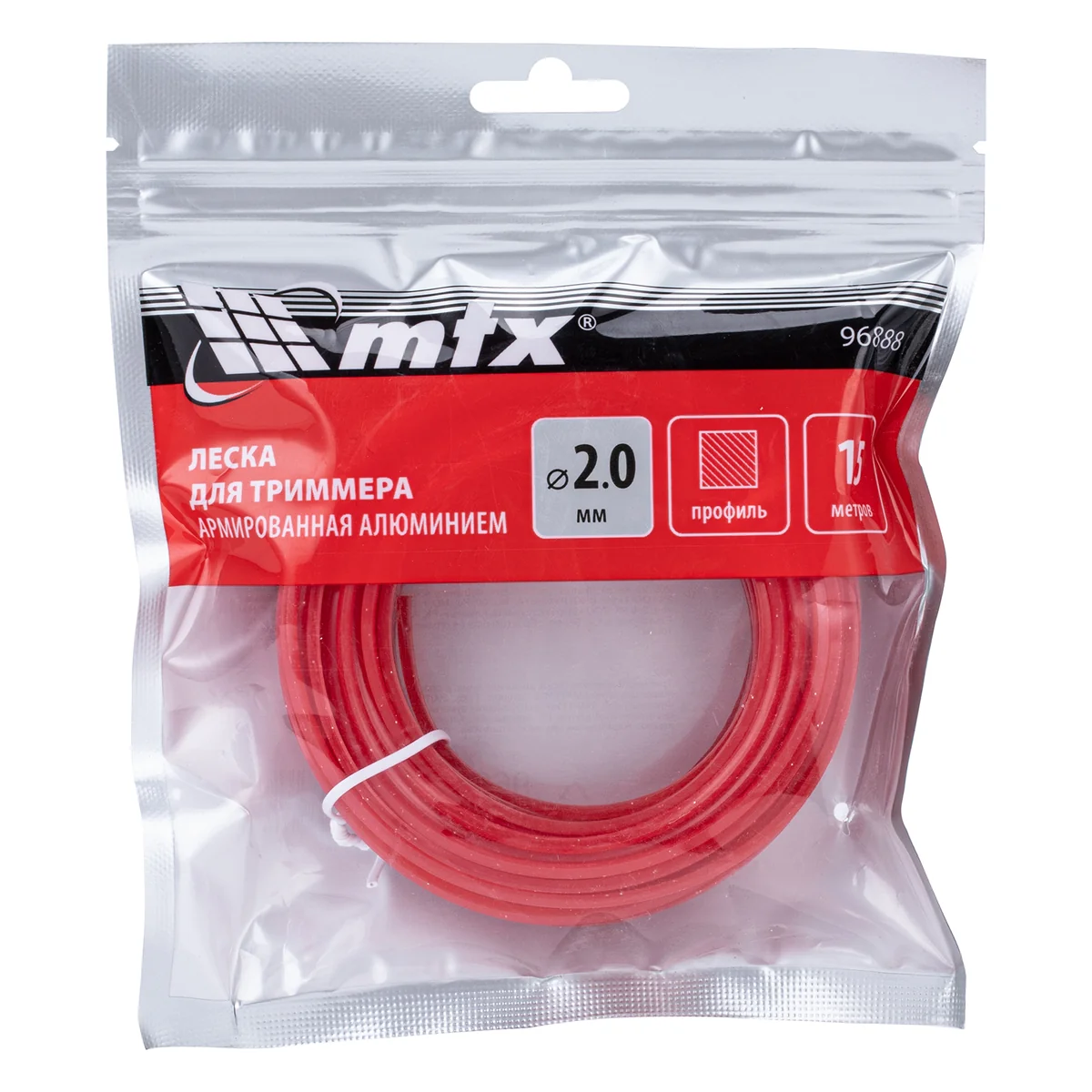 Леска для триммера MTX 96888 с сечением «квадрат», толщиной 2,0 мм и длиной 15 м, армированная алюминием, эффективно срезает как молодую, газонную, так и высокую, жесткую траву. Совместно с электрическим триммером мощностью 1000-1500 Вт позволяет привести в порядок территорию загородного участка.