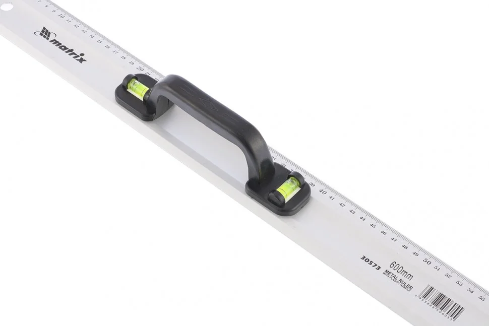 Линейка-уровень, 600 мм, металлическая, пластмассовая ручка 2 глазка Matrix 30573