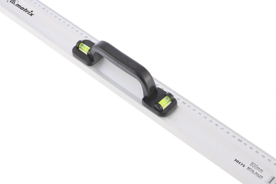 Металлическая линейка-уровень Matrix 30575, длина шкалы 800 мм, с пластмассовой ручкой и 2 глазками, предназначена для разметки материалов и измерения различных предметов. Инструмент снабжен 2 жидкостными глазками, которые позволяют определить степень отклонения поверхностей от вертикали и горизонтали. Линейка используется во время строительных и ремонтных работ, а также будет полезна при установке мебели и монтаже навесного оборудования.ПреимуществаЛинейка-уровень изготовлена из жесткого алюминиевого профиля, усиленного ребрами жесткости, поэтому устойчива к деформациям и служит долго.Четкая шкала будет хорошо видна даже при длительной эксплуатации.Удобная пластмассовая рукоятка обеспечивает комфорт во время работы.