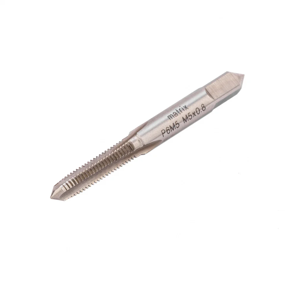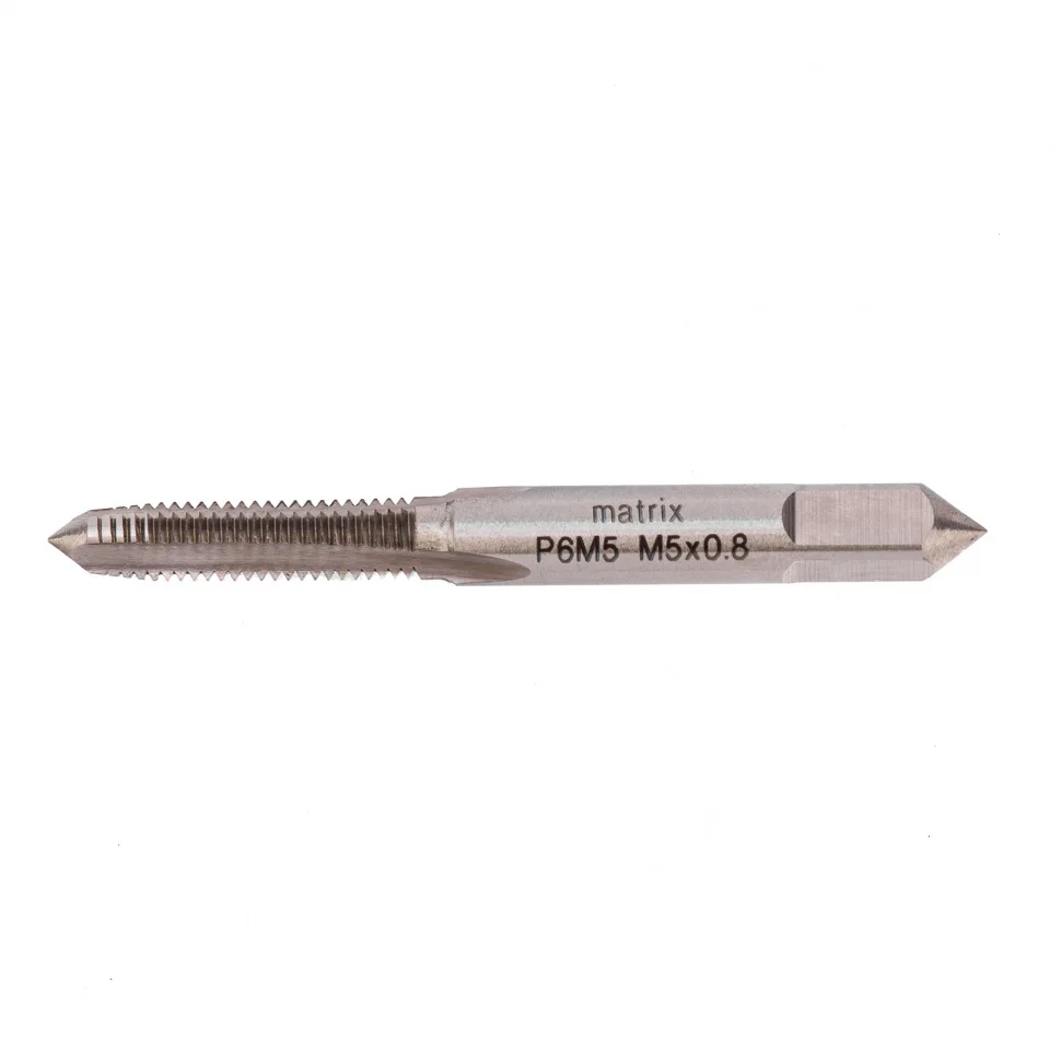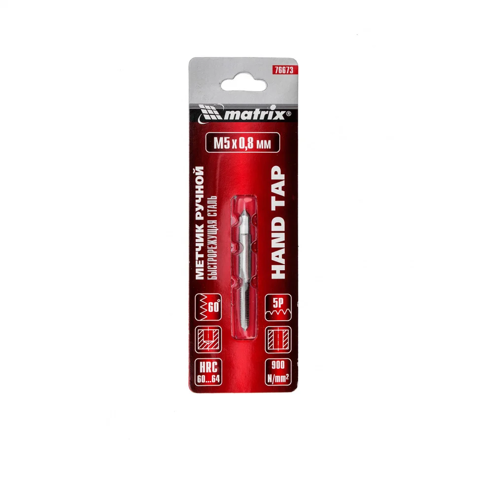 Ручной метчик Matrix 76673, HSS, — резьбонарезной инструмент, который используется для создания резьбы диаметром М5 и шагом 0,8 мм. Оптимален для работы с деталями из твердой стали прочностью до 900 Н/мм2. Нарезает резьбу за один проход. Метчик устанавливается на метчикодержатель с патроном под хвостовик 5 мм. Будет полезен в слесарной мастерской, а также дома или в гараже.ПреимуществаУниверсальность — метчик подходит для работы как с глухими, так и со сквозными отверстиями.Прочность — инструмент изготовлен из быстрорежущей стали P6M5, устойчивой к повышенным нагрузкам.Высокий ресурс — рабочие части твердостью 60-64 HRC долго держат заточку.Удобная блистерная упаковка — перед покупкой можно осмотреть метчик и ознакомиться с его характеристиками.