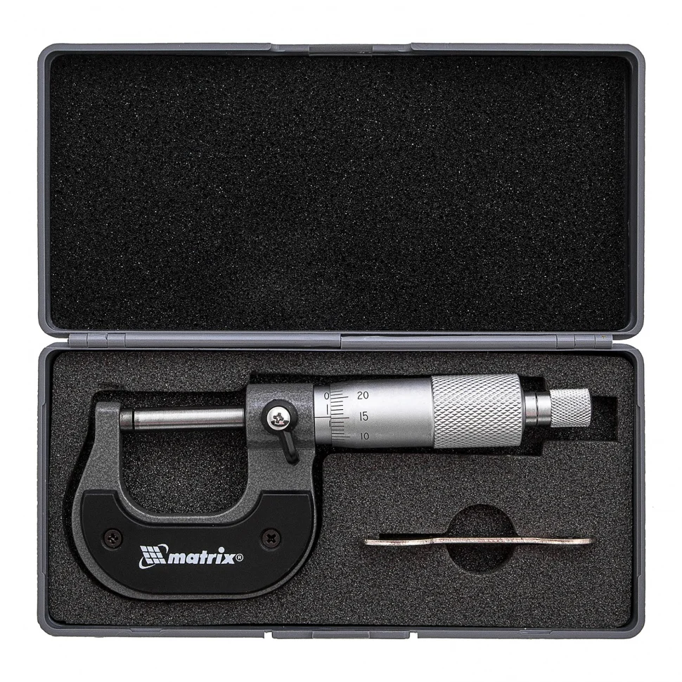 Микрометр механический Matrix 317255 используется для измерения толщины листового металла и деталей размером 0-25 мм. Обеспечивает высокую точность результатов — шаг измерения составляет 0,01 мм с допустимой погрешностью ±0,004 мм. Микрометр будет полезен на производстве, в слесарной мастерской и автосервисе.