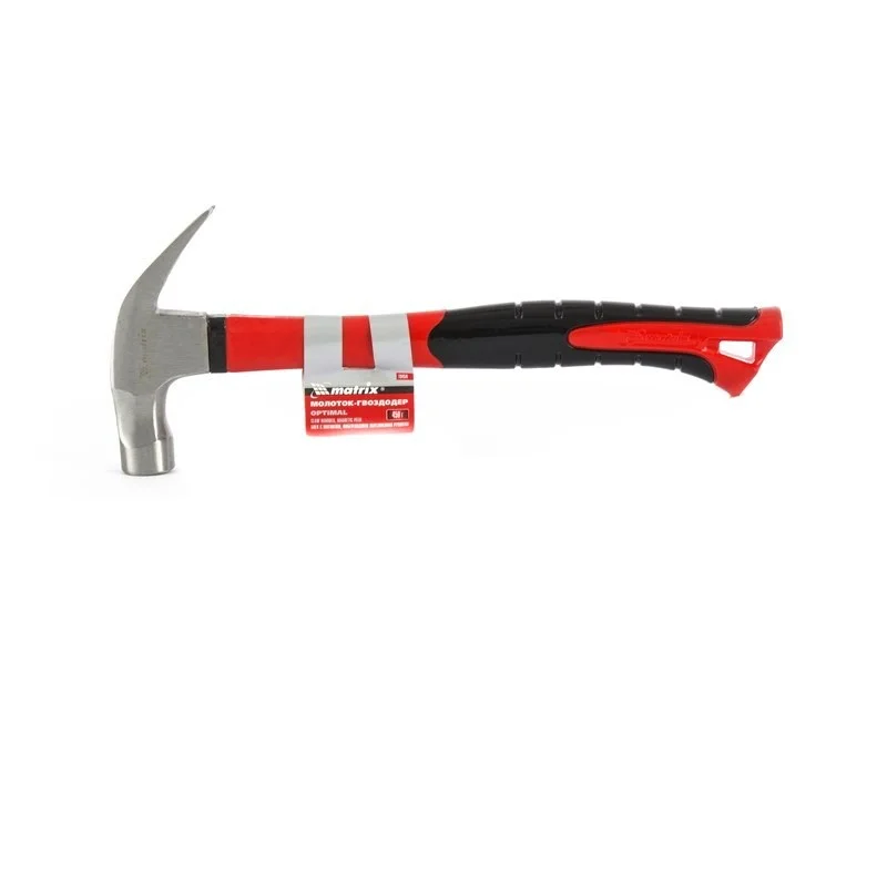 Молоток-гвоздодер optimal, 450 г, боек c магнитом, фибергласовая обрезиненная рукоятка Matrix 10454