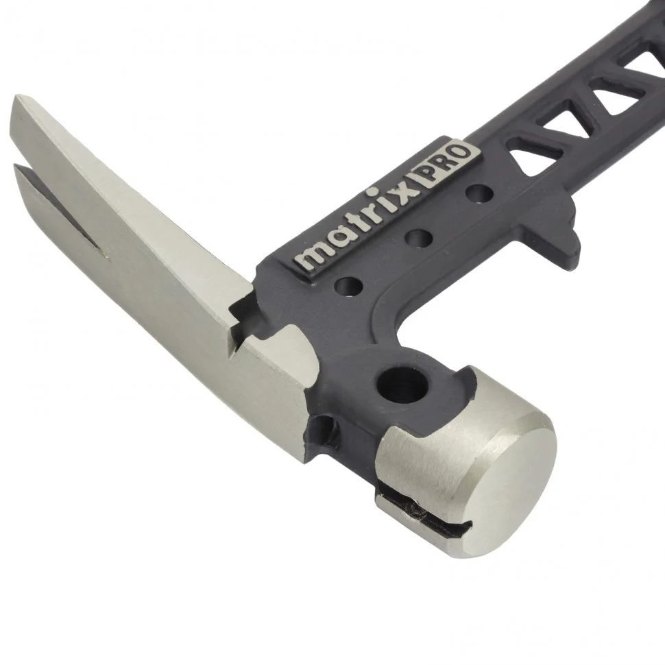 Цельнокованый строительный молоток-гвоздодер Matrix PRO 10467 с головкой весом 450 г, магнитом и двухкомпонентной обрезиненной рукояткой используется при проведении строительных и монтажных работ. Инструмент позволяет эффективно решать поставленные задачи благодаря бойку для нанесения ударов, гвоздодеру для извлечения гвоздей, а также монтажному выступу, который служит для захвата стройматериалов. Молоток оптимизирован для работы в труднодоступных местах — магнитный фиксатор позволяет наживить гвоздь, не придерживая его рукой.ПреимуществаНевозможность поломки и повреждения рукоятки — инструмент имеет цельнокованую конструкцию.Износостойкость — рабочая часть прошла закалку, ее твердость составляет 50-55 HRC.Возможность работы с гвоздями разного размера — у молотка имеются большой и малый гвоздодеры.Функциональность — в корпусе предусмотрены отверстия для выгибания прутков и гвоздей.Комфорт и безопасность эксплуатации — двухкомпонентная обрезиненная рукоятка с рельефной поверхностью не скользит даже в мокрой руке.