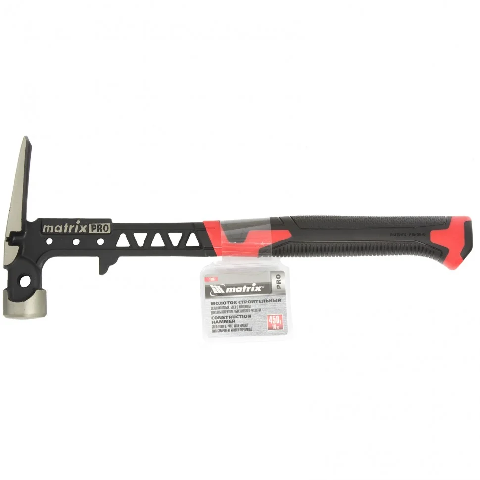 Молоток строительный, 450 г, цельнокованый, боек с магнитом, двухкомпонентная обрезиненная рукоятка Matrix Pro10467