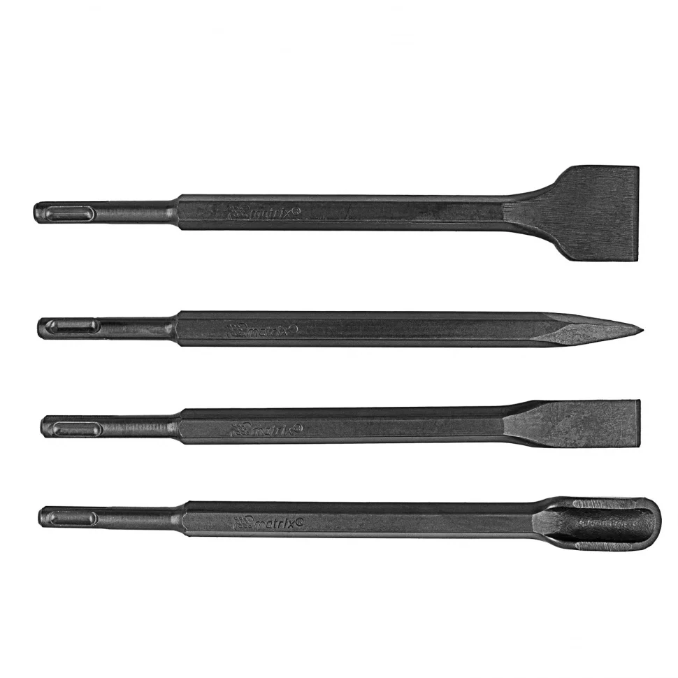Набор Matrix 71098, упакованный в бокс, включает 9 буров по бетону размером 6-8-10 х 160 мм, 8-10-12 х 210 мм, 10-12-14 х 260 мм и 4 зубила, которые используются в качестве оснастки на перфораторах с патронами SDS PLUS. Набор предназначен для сверления отверстий в бетоне, кирпиче и камне, а также для удаления старого слоя штукатурки, снятия облицовочной плитки, штробления и демонтажа армированного бетона. Подходит для работы на строительной площадке, пригодится ремонтным бригадам и профессиональным мастерам, также будет полезен в быту.ПреимуществаВысокий ресурс — твердосплавные рабочие пластины буров выполнены из стали ВК8 твердостью 80-90 HRC, а кромки зубил самозатачиваются во время работы.Прочность — рабочие части буров и зубил выдерживают интенсивные ударные нагрузки, т.к. изготовлены из закаленной легированной стали 40Х с добавлением хрома.Повышенная производительность — режущие поверхности зубил с оптимально подобранными углами заточки увеличивают эффективность работ.Эффективный отвод шлама — двойная усиленная спираль буров ускоряет удаление пыли в процессе сверления, что позволяет уменьшить нагрузку на перфоратор.Удобное хранение и транспортировка — набор упакован в прочный пластиковый кейс.