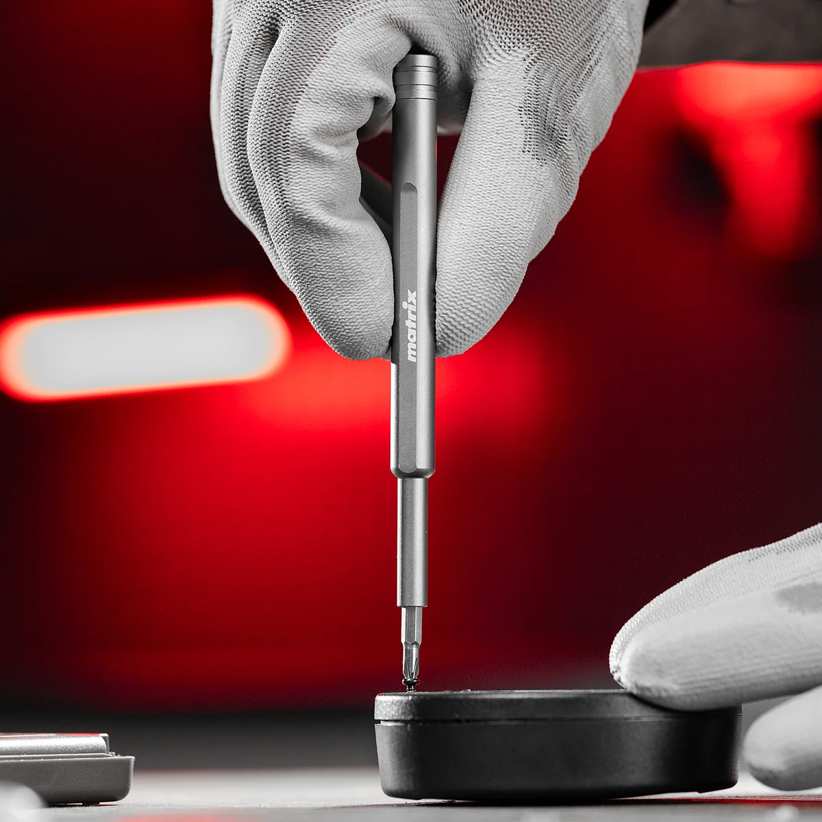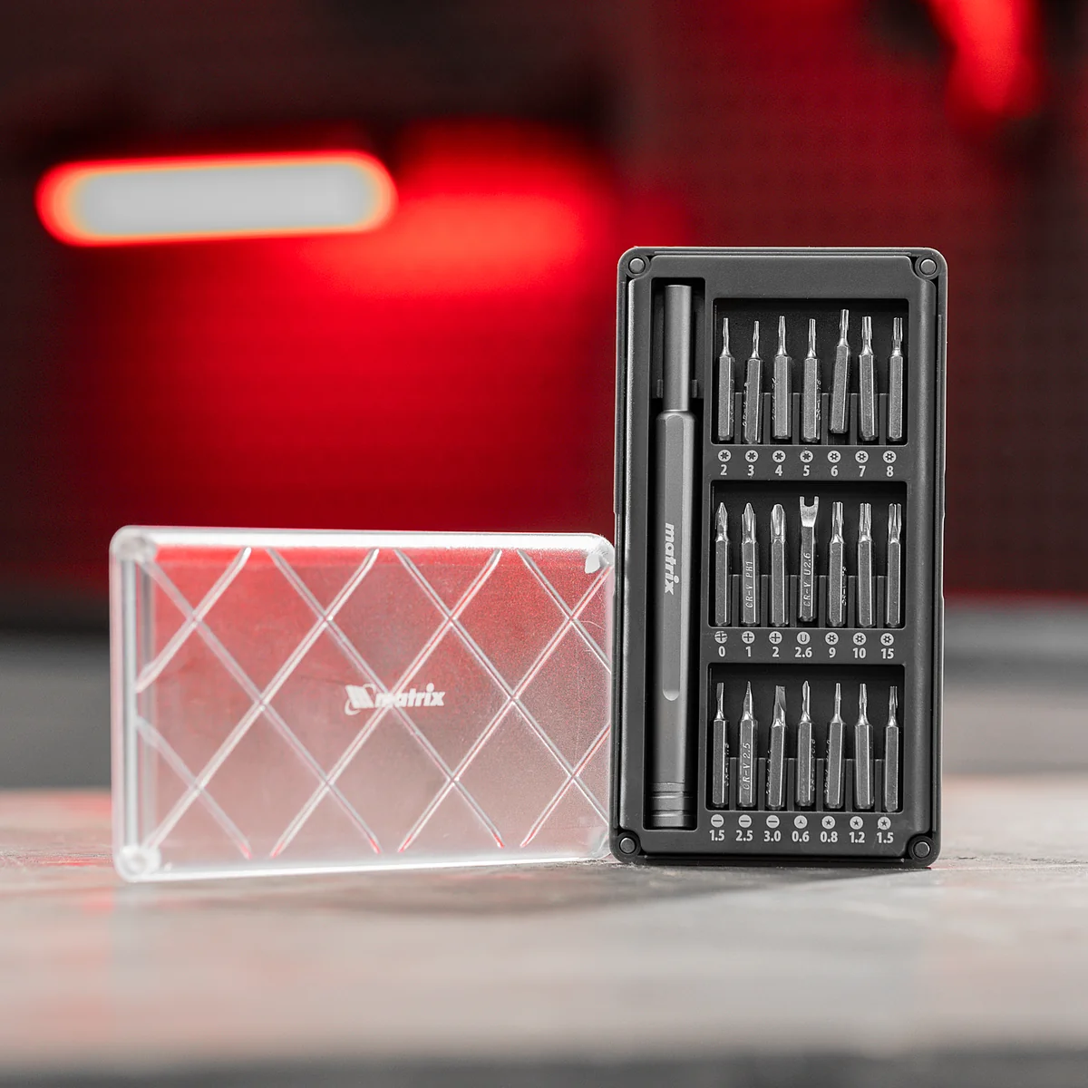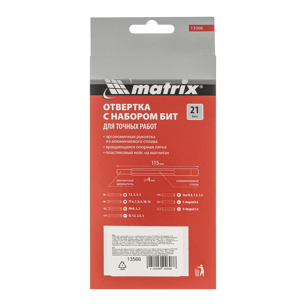 Набор для точных работ Matrix 13566, содержит 21 биту и рассчитан на выполнение точных работ. С его помощью можно отремонтировать очки, игрушки, портативную и бытовую технику и т.д.