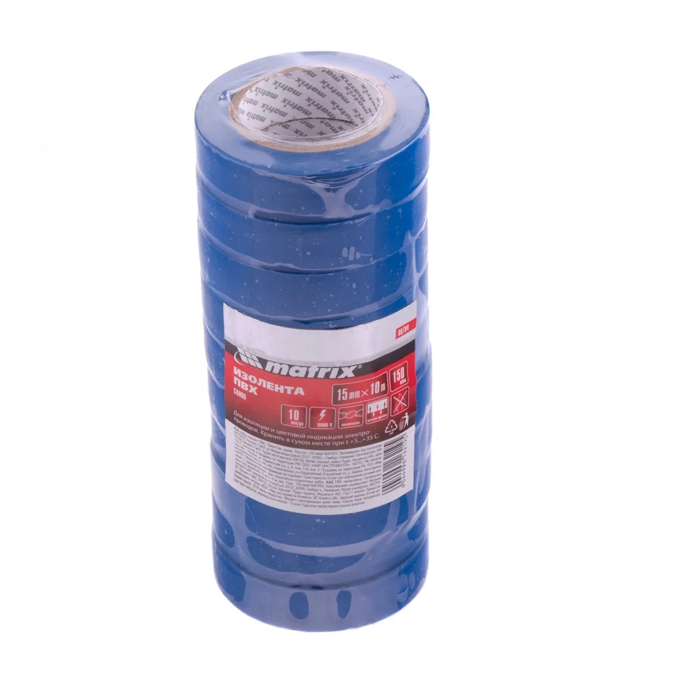 Набор изолент ПВХ 15 мм х 10 м, синяя, в упаковке 10 шт, 150 мкм Matrix 88784
