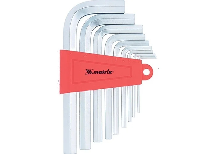 Набор коротких имбусовых ключей HEX Matrix 12301, 2-12 мм, CrV, сатин.,9 шт., - незаменимый помощник в арсенале как начинающего, так и профессионального мастера. С его помощью можно собрать мебель или выполнить мелкие бытовые работы. Шестигранные ключи применяются при работе с крепежом, оснащенным внутренним шестигранником. Благодаря небольшой длине они позволяют работать в условиях ограниченного пространства.ПреимуществаКлючи сделаны из хромованадиевой стали и закалены до твердости 50-55 HRC, поэтому обладают высоким ресурсом и необходимой прочностью.Ключи обработаны методом сатинирования для получения гладкой поверхности без микронеровностей, это гарантирует крепкий захват в руке.Пластиковый держатель с кольцом для подвеса обеспечивает удобство хранения и транспортировки ключей.Набор состоит из 9 наиболее часто используемых ключей, позволяющих проводить работы с крепежом различного размера.