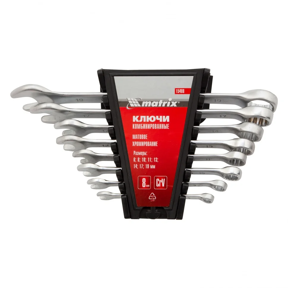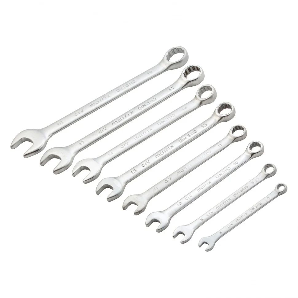 Набор ключей комбинированных, 6-19 мм, 8 шт, CrV, матовый хром Matrix 15408