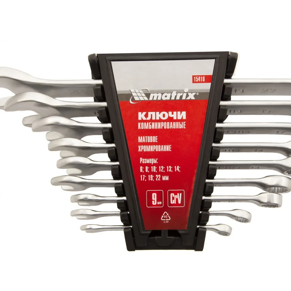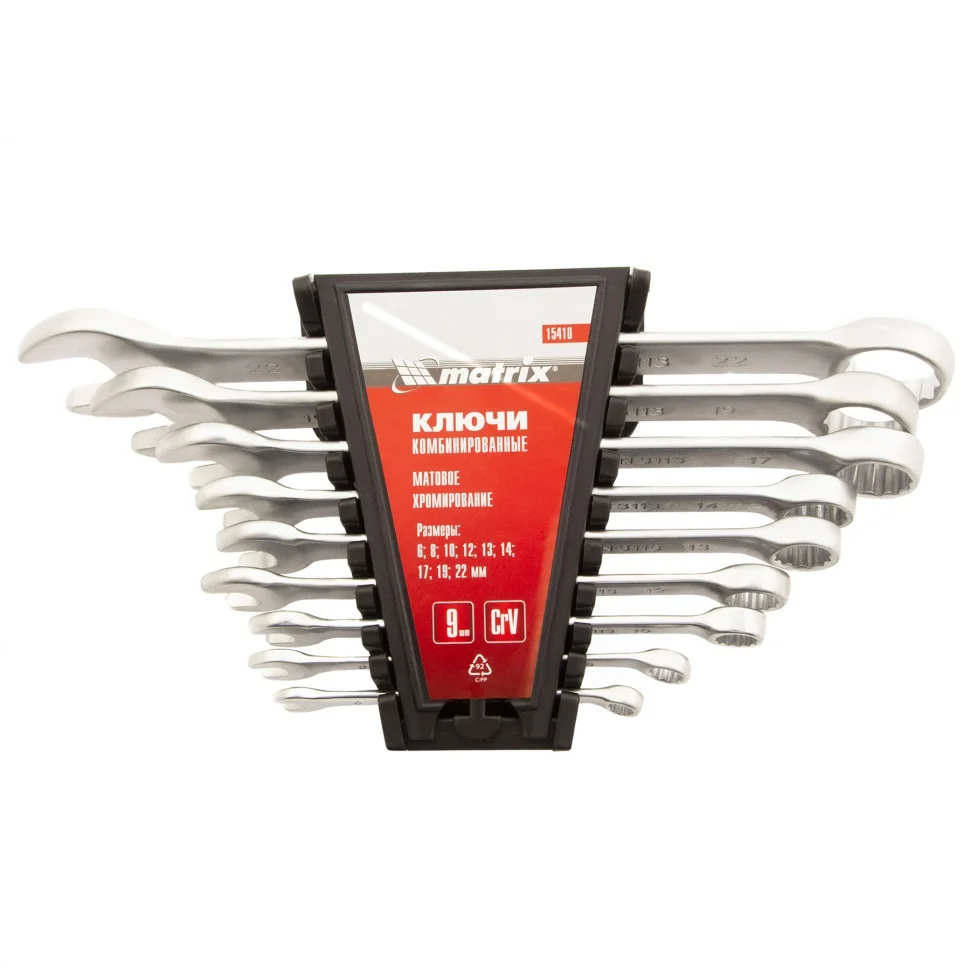 Набор ключей комбинированных, 6-22 мм, 9 шт, CrV, матовый хром Matrix 15410