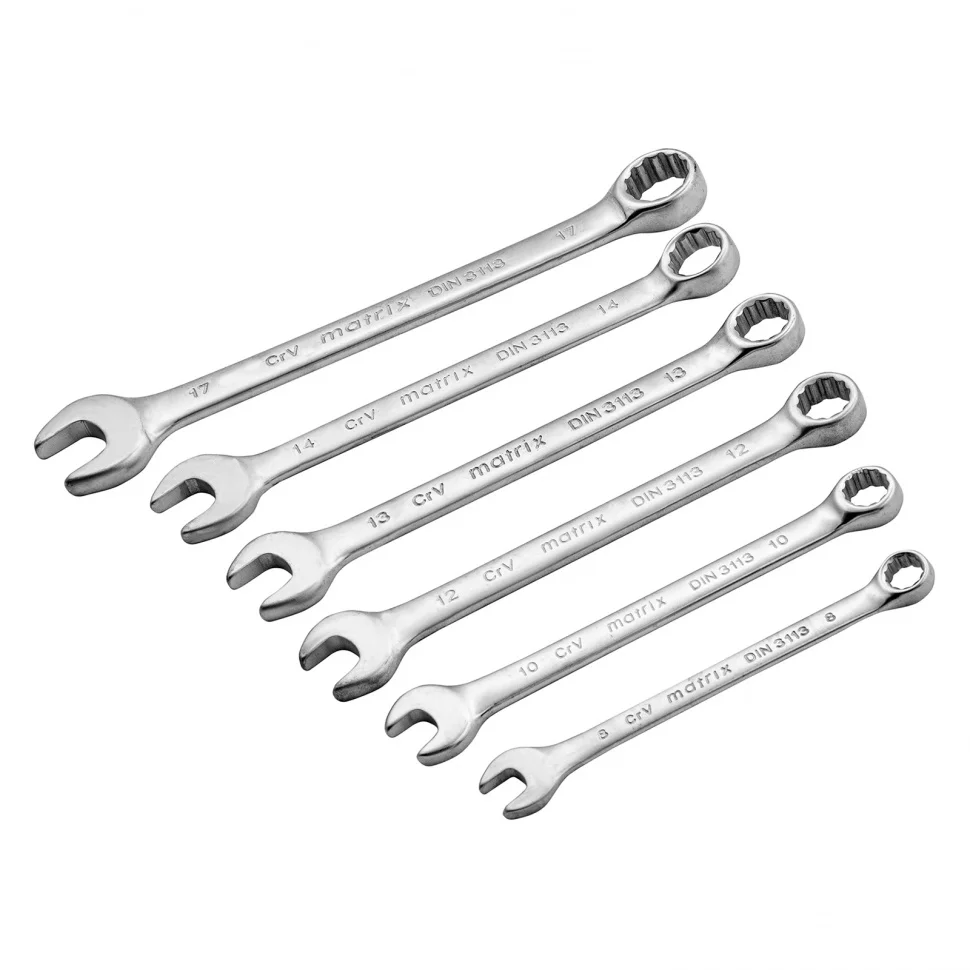 Набор ключей комбинированных, 8-17 мм, 6 шт, CrV, матовый хром Matrix 15404