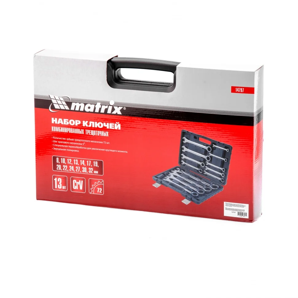 Набор ключей комбинированных, трещоточных 13 шт. Matrix 14797