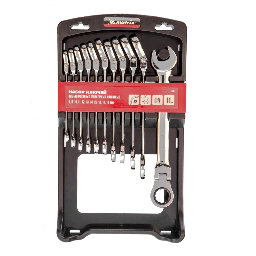Набор ключей комбинированных, трещоточных шарнирных 11 шт. Matrix 14796