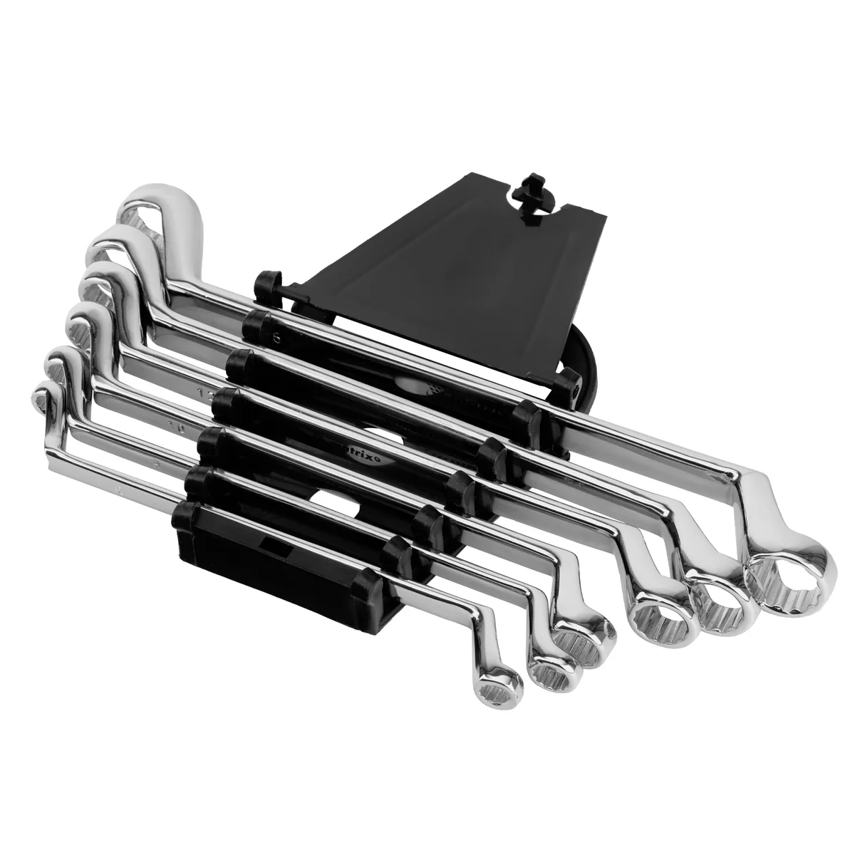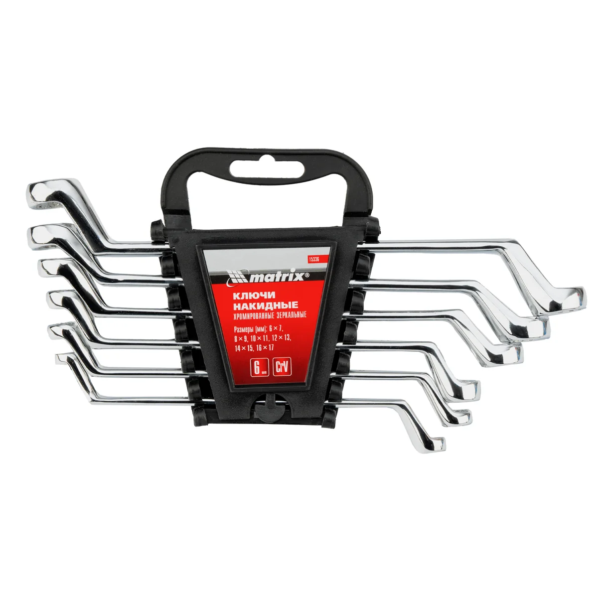 Набор накидных ключей Matrix Elliptical 15336, 6шт., с зеркальным хромированием, из стали CrV, предназначен для откручивания и закручивания болтовых соединений диаметром 6-17 мм. Он будет полезен слесарям, строителям, автомеханикам и другим мастерам при проведении ремонтных работ. Накидной ключ гораздо удобнее рожкового, т.к. вращение происходит без отрыва от детали.ПреимуществаХромованадиевая сталь, из которой выполнены ключи, отличается повышенной твердостью и износостойкостью, поэтому они легко выдерживают интенсивное использование.Ключи изготовлены по стандартам ГОСТ: твердость рабочих частей составляет 40-45 HRC.Зеркальное хромоникелевое покрытие не сходит со временем, обеспечивает надежную защиту от образования коррозии.12-гранный кольцевой профиль обеспечивает увеличенную площадь контакта с резьбовыми соединениями, такое решение позволяет снизить риск повреждения крепежа.Отклоненные от рукоятки рабочие части облегчают работу в труднодоступных местах.Пластмассовый держатель в комплекте упрощает транспортировку и хранение ключей.